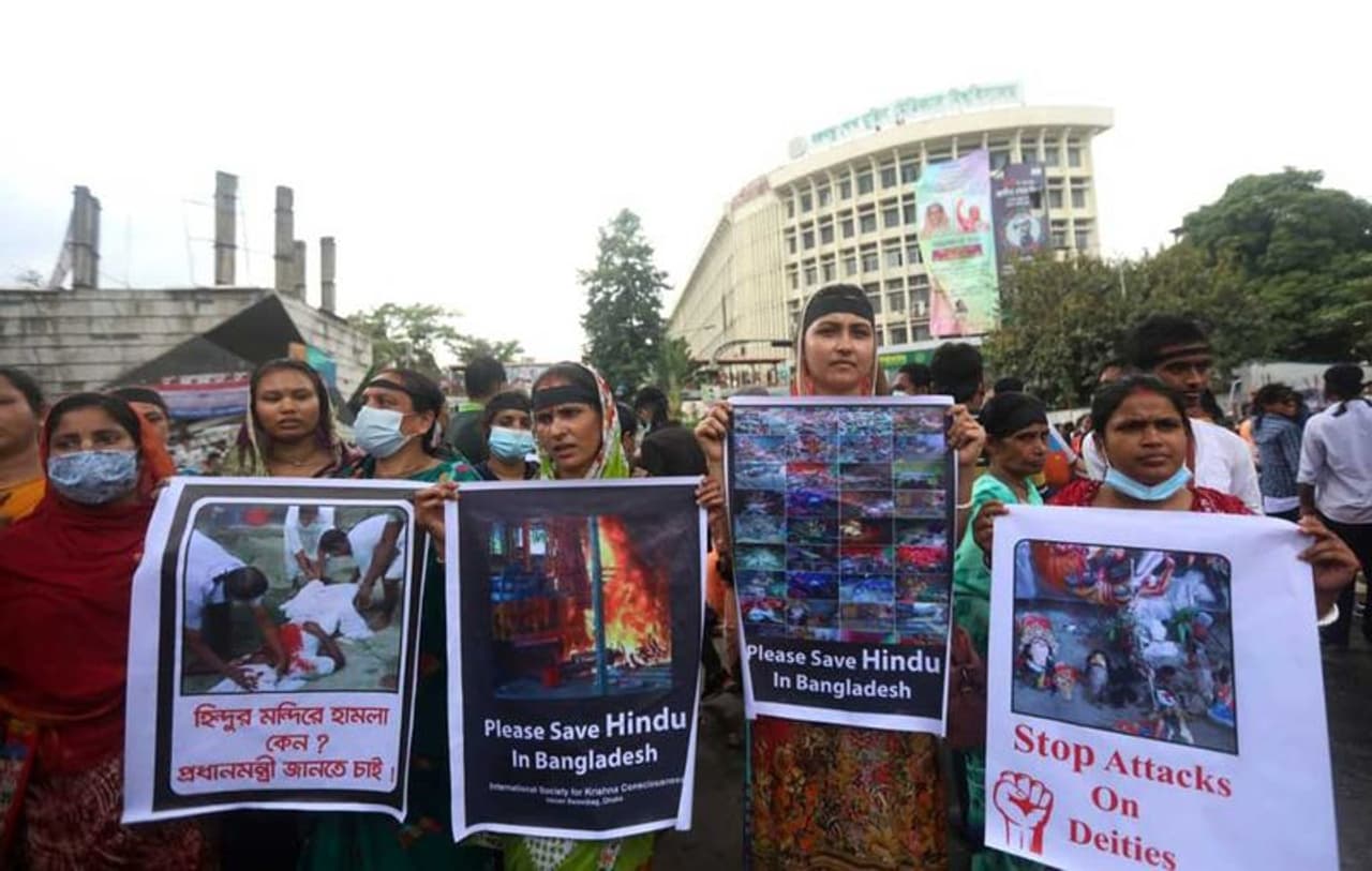 मंदिरों और पूजा स्थलों पर हुए हमलों के विरोध में ढाका विश्वविद्यालय के छात्रों के साथ धार्मिक समूहों ने सोमवार को ढाका में शाहबाग चौराहे को अवरुद्ध कर दिया। लगभग 10.30 बजे, विश्वविद्यालय के सैकड़ों छात्र राजधानी के प्रमुख चौराहे पर एकत्र हुए और स्वामीबाग आश्रम इस्कॉन के बैनर तले प्रदर्शनकारियों के एक समूह में शामिल हो गए। प्रदर्शनकारियों ने प्रेस क्लब में एक रैली की और शाहबाग तक मार्च किया।
