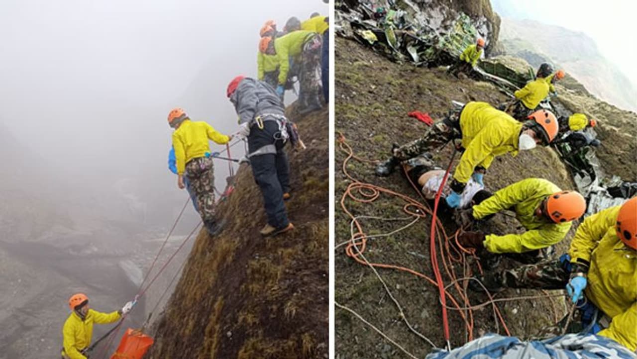 29 मई को तारा एयरलाइंस के 9N-AET प्लेन के क्रैश होने की जानकारी मिलने के तुरंत बाद रेस्क्यू शुरू हो गया था। लेकिन जिस जगह पर प्लेन के गिरने की खबर थी, वहां तक पहुंचना हर किसी के वश की बात नहीं है। हालांकि 9 माउंटन गाइड की हेल्प से सेना ने यह रेस्क्यू 2 दिन यानी 31 मई का पूरा किया। नेपाल की लोकल मीडिया वेबसाइट nepalnews ने इस रेस्क्यू की कुछ तस्वीरें और जानकारी शेयर की हैं।