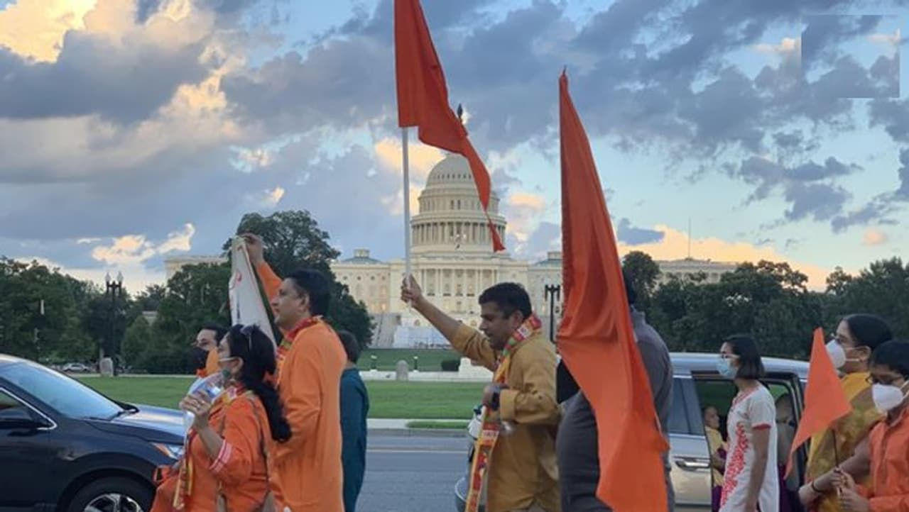 राम मंदिर भूमि पूजन का अयोध्या से अमेरिका तक में जश्न, वॉशिंगटन में भारतीयों ने लहराए भगवा झंडे