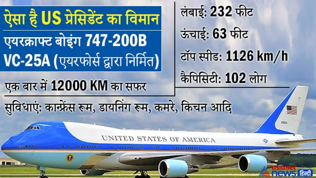 बताते हैं कि अमेरिकी राष्ट्रपति अभी जो विमान इस्तेमाल कर रहे हैं, वो 1991 से सर्विस में है। माना जा रहा है कि उसे 2024 में बदल दिया जाएगा। 2020 में जब डॉनाल्ड ट्रम्प भारत आए थे, तब इस विमान की खासी चर्चा हुई थी। ट्रम्प ने 2018 में बोइंग कंपनी से दो एयरफोर्स विमान का करार किया था। एक विमान की कीमत करीब 1500 करोड़ आकी गई थी।