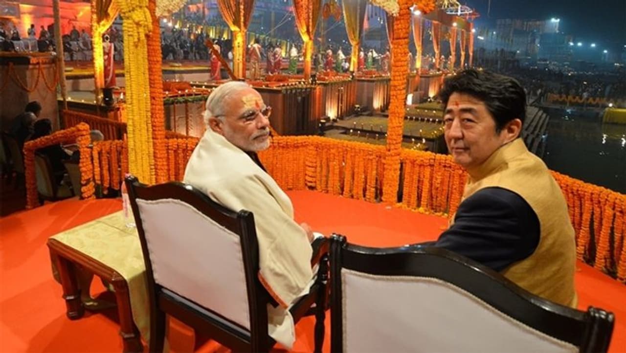 अपनी तीसरी भारत यात्रा के दौरान शिंजो आबे प्रधानमंत्री मोदी के साथ वाराणसी में गंगा आरती में शामिल हुए थे। यहां उन्होंने पूजा की थाली हाथ में लेकर गंगा आरती भी की थी।