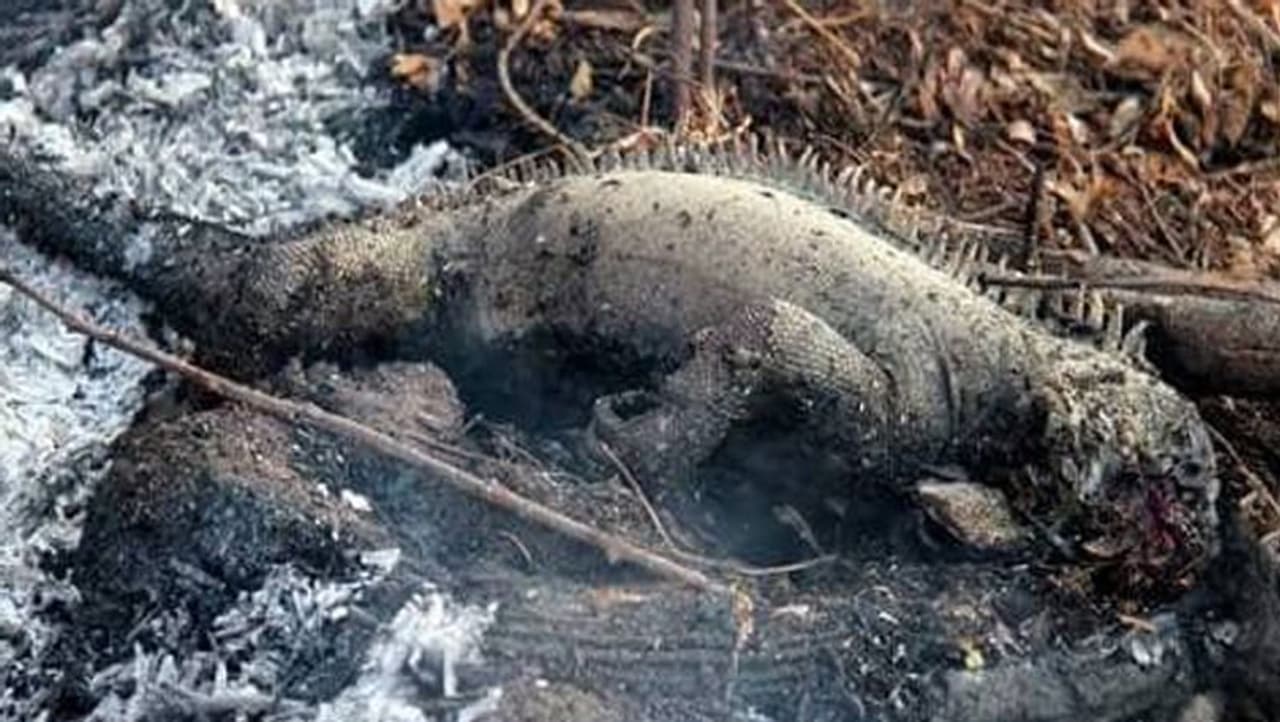 आग की चपेट में आया एक खरगोश जलकर मूर्ती की तरह जम गया है।