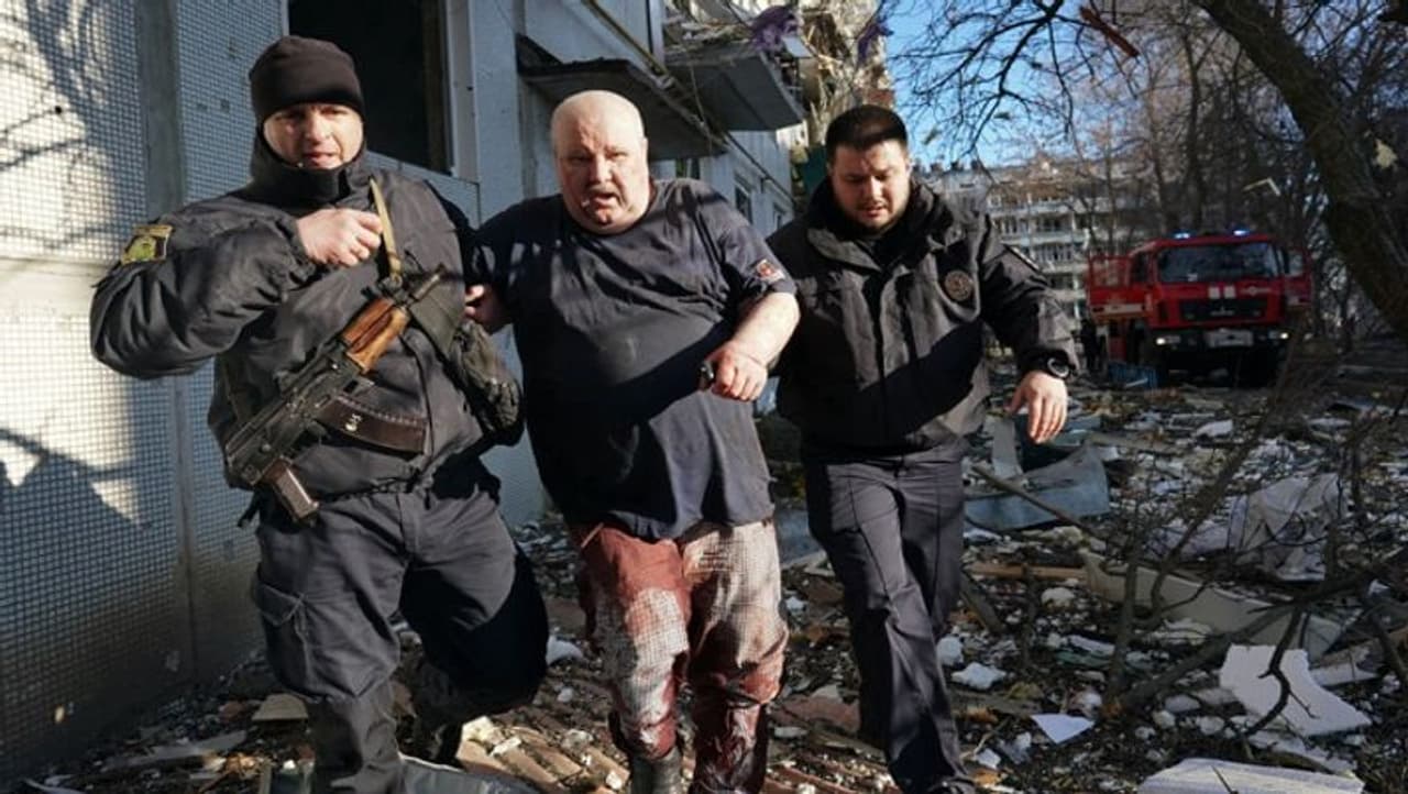 रूस द्वारा यूक्रेन की राजधानी कीव में किए गए हवाई हमले से कई इमारतें ध्वस्त हो गईं। इससे काफी संख्या में लोग घायल हो गए। घायलों को राहत व बचावकर्मियों ने बाहर निकाला और अस्पताल पहुंचाया।