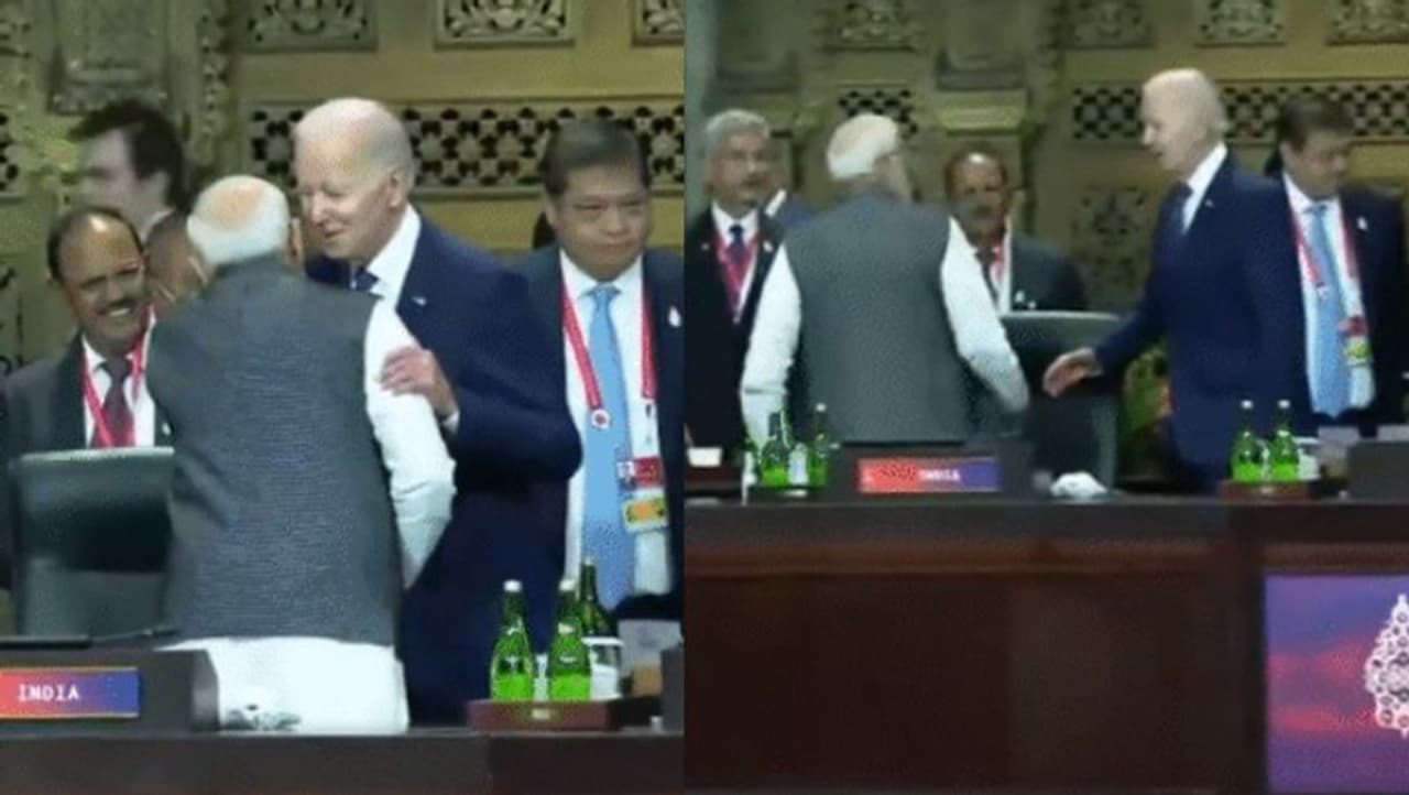 दरअसल, मोदी बाइडेन को देख नहीं पाए थे। वे दूसरी तरफ जा रहे थे। इसी बीच बाइडेन ने उन्हें आवाज लगाई और उनके पीछे-पीछे आते हुए हाथ आगे बढ़ाया। बाद में दोनों नेता गले मिले। ये देख वहां मौजूद भारत के राष्ट्रीय सुरक्षा सलाहकार (NSA) अजीत डोवाल मुस्कुराते नजर आए।