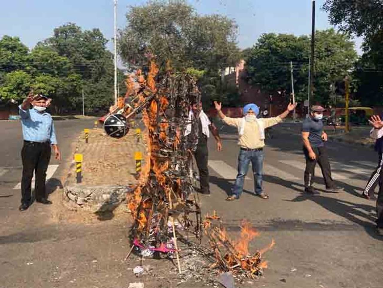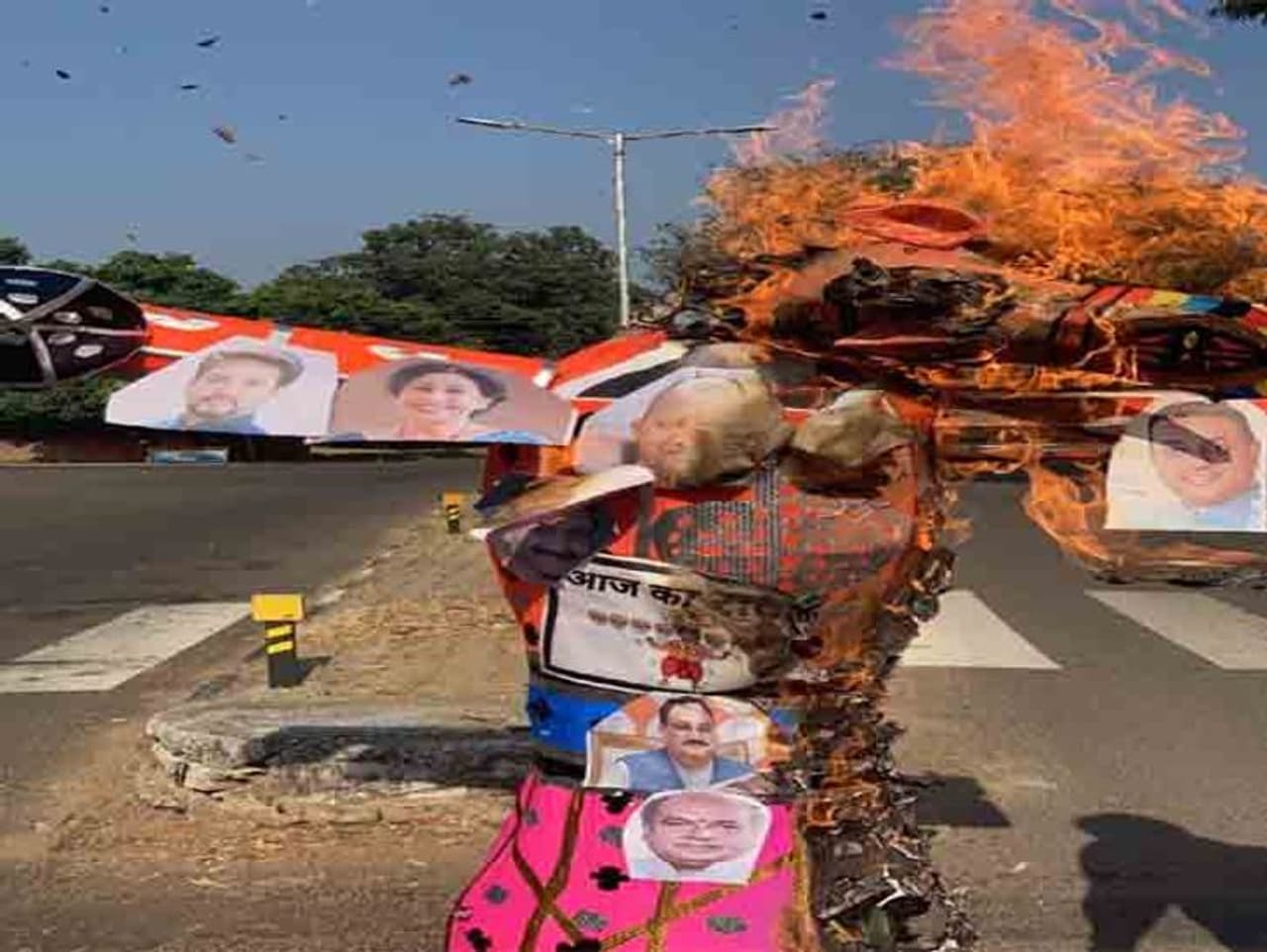 बता दें कि विरोध करने वालों ने रावण की जगह पर पीएम मोदी का चेहरा लगाया हुआ था। इसके अलावा अन्य 10 चेहरों की जगह हरियाणा से सभी 10 लोकसभा सांसदों के चेहरे लगाए गए थे। वहीं पुतले पर रक्षामंत्री, यूपी के मुख्यमंत्री, केंद्रीय राज्यमंत्री अनुराग ठाकुर, चंडीगढ़ की एमपी किरण खेर, गृहमंत्री अमित शाह, केंद्रीय हेल्थ मिनिस्टर सहित कई नेताओं की तस्वीरें भी लगाईं गई थीं।