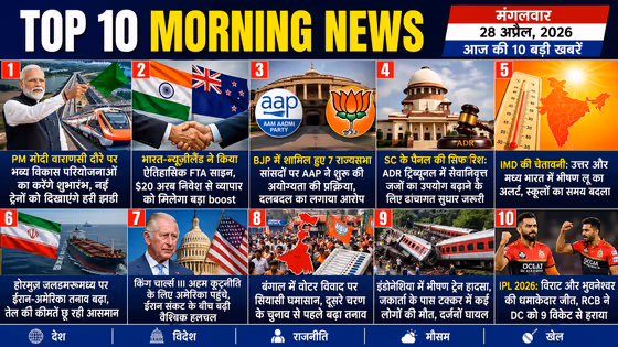 Top 10 Morning News: ग्लोबल क्राइसिस से लेकर डिजिटल स्कैम तक-सुबह की 10 बड़ी खबरें, देश-दुनिया के ताज़ा अपडेटTop 10 Morning News: बस हादसा, रिफाइनरी आग और IMF झटका-21 अप्रैल 2026 की 10 बड़ी खबरेंUP Crime Shock: 48 वर्षीय शख्स ने जुड़वा बेटियों का गला काटकर मारा, फिर पुलिस को दी खुद सूचना