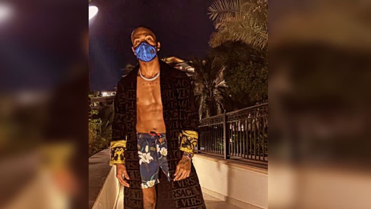 खुली शर्ट और मास्क लगाए वायरल हुई तस्वीर