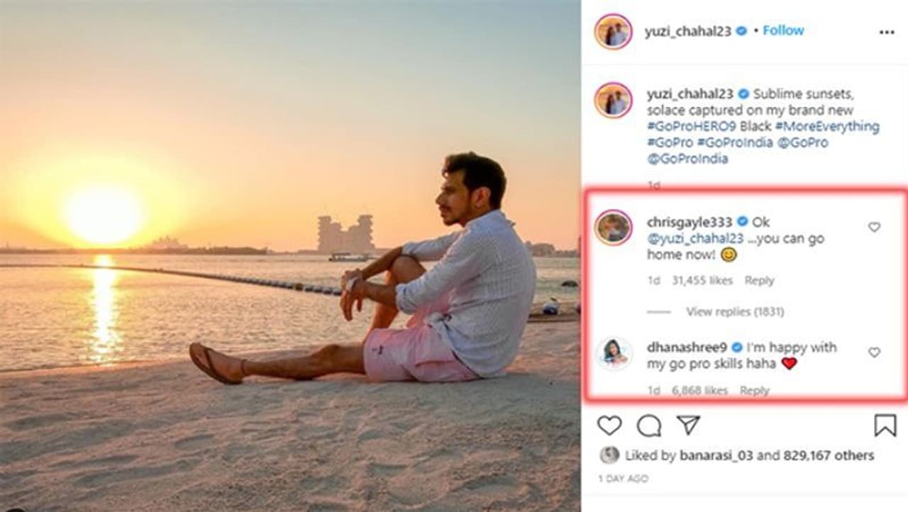 फैंस ही नहीं बल्कि युनिवर्सल बॉस यानी की क्रिस गेल भी इस क्यूट जोड़ी के मज़े लेते नजर आए थे। हाल ही में धनाश्री ने चहल की सैनसेट के दौरान एक फोटो क्लिक की थी। चहल की इस तस्वीर पर गेल ने कमेंट किया कि 'अब तुम घर जा सकते हो'। हालांकि वो सिर्फ ऐसा उनके मज़े लेने के लिए बोल रहे थे। बता दें कि किंग्स इलवेन पंजाब से पहले क्रिस गेल आरसीबी का हिस्सा थे।