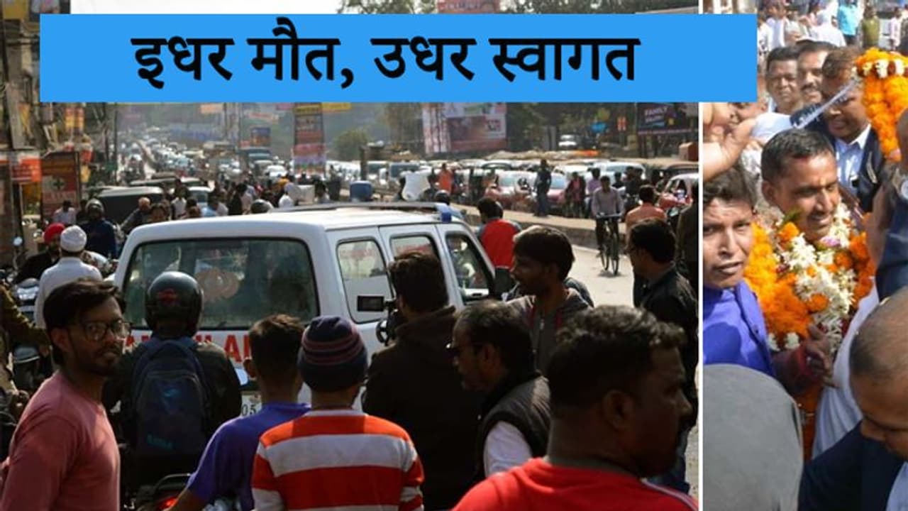 हेल्थ मिनिस्टर बन्ना गुप्ता का काफिला घाटशिला की ओर से रविवार सुबह करीब 11 बजे शहर में घुसा था। उनका जगह-जगह स्वागत किया जा रहा था। काफिला दोपहर करीब 1.30 बजे मानगो पहुंचा। यहां उनके स्वागत में इतनी भीड़ उमड़ी कि सड़क पूरी तरह से जाम हो गई। इस दौरान आतिशबाजी भी की जा रही थी। इससे भी लोग डरे हुए थे। इसी बीच एम्बुलेंस क्रमांक-BR16E5922 वहीं फंस गई। एम्बुलेंस के ड्राइवर खालिद ने चिल्ला-चिल्लाकर लोगों को रास्ता देने की गुहार लगाई। वे गिड़गिड़ाए, लेकिन किसी ने उनकी बात नहीं सुनी। करीब घंटेभर बाद जब एम्बुलेंस को रास्ता दिया गया, तब तक मरीज की मौत हो चुकी थी।
