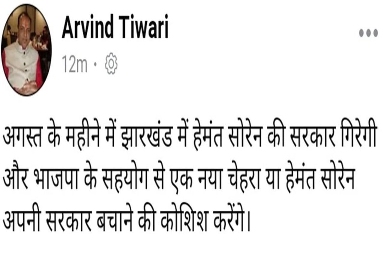 बता दें कि महाराष्ट्र में सत्ता परिवर्तन होने के बाद सोशल मीडिया में यूजर्स ने कई तरह के कमेंट किए थे। बहुत से यूजर्स ने सोशल मीडिया में कमेंट करते हुए कहा था कि अगला नंबर अब झारखंड का है। इसी बीच पंडित अरविंद तिवारी ने अपनी भविष्यवाणी की है।