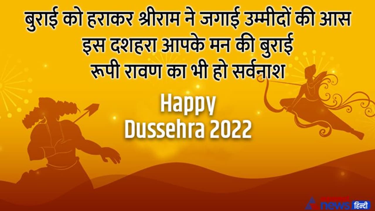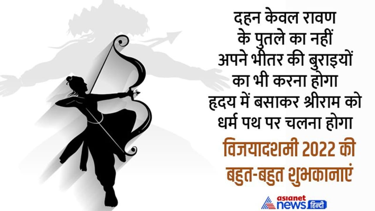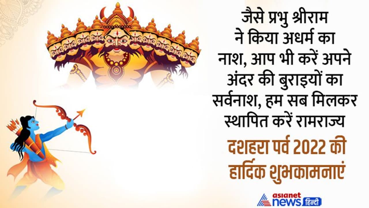 Dusshara 2022 Wishes: आश्विन मास के शुक्ल पक्ष की दशमी तिथि को विजयादशमी का पर्व मनाया जाता है। इस बार ये पर्व 5 अक्टूबर, बुधवार को मनाया जाएगा। मान्यता के अनुसार, इसी तिथि पर भगवान श्रीराम ने राक्षसराज रावण का वध किया था।