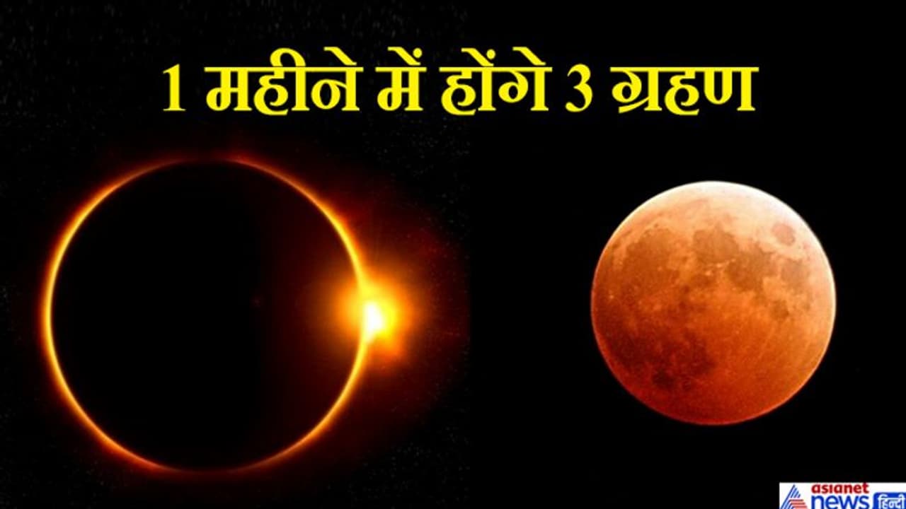 - 5 जून को ज्येष्ठ की मास की पूर्णिमा है। 21 जून को आषाढ़ मास की अमावस्या है। 5 जुलाई को आषाढ़ मास की पूर्णिमा है। इन तीनों तिथियों पर ग्रहण होंगे। हिन्दी पंचांग के अनुसार एक ही माह में तीनग्रहण होने वाले हैं।