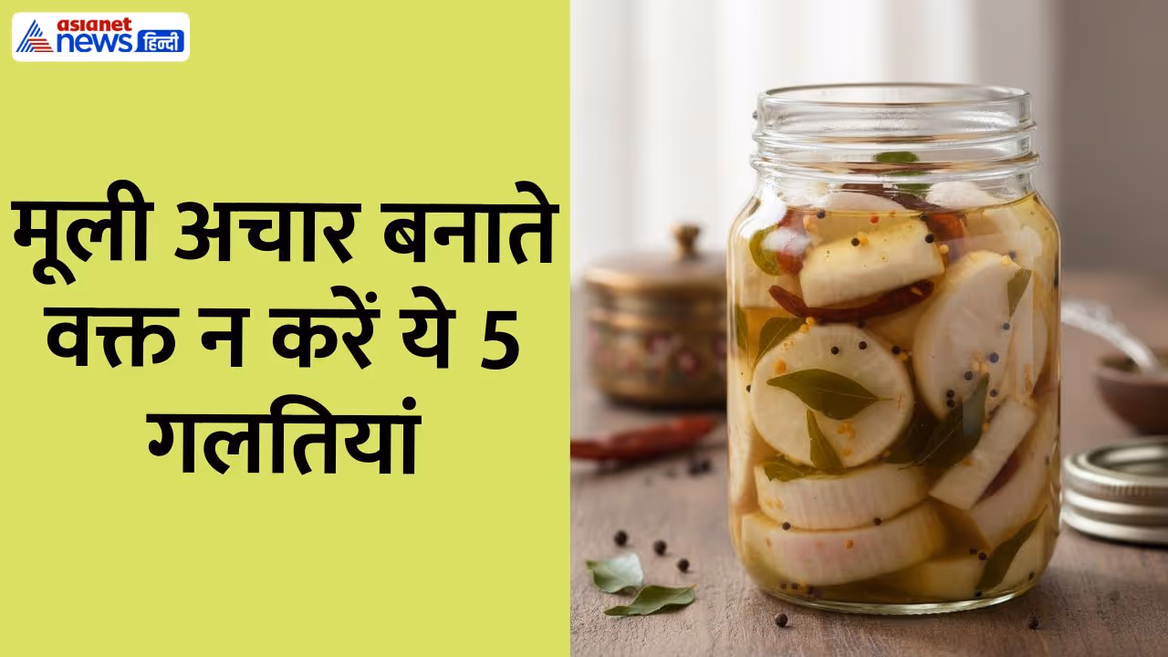 Mooli Achar Mistakes: मूली के अचार में फफूंदी लगने की वजह बनती हैं ये 5 आम गलतियां। जानें अचार बनाने का सही तरीका और बनाएं ऐसा मूली का अचार जो महीनों तक फ्रेश और स्वादिष्ट रहे। इन आम गलियों से बचकर आप एक्स्ट्रा टेस्टी अचार घर पर बना सकते हैं।
