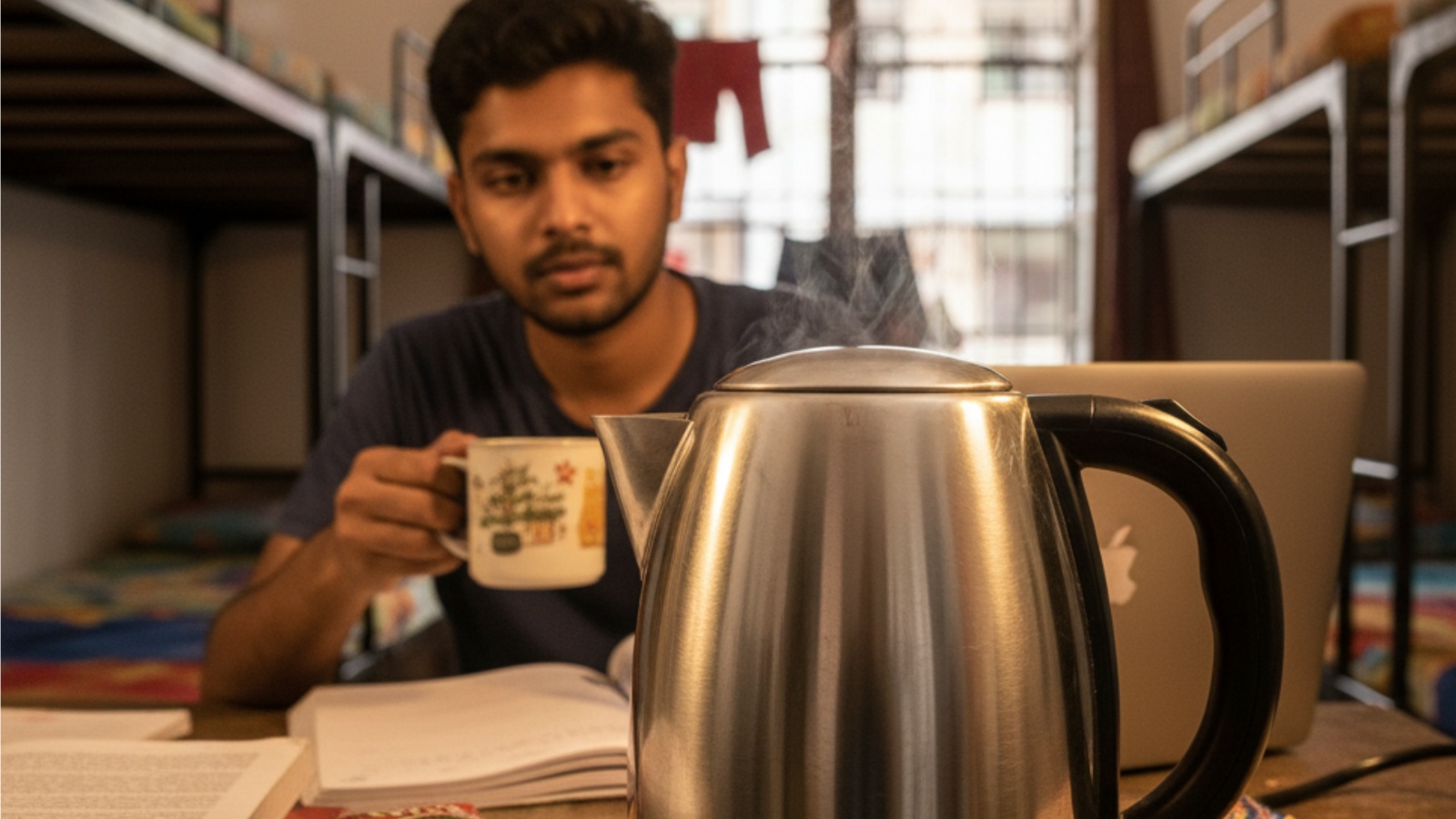 पानी उबालने से चाय बनाने के लिए इलेक्ट्रिक केतली काम की चीज है। आप इसमें 3-5 मिनट में चाय, कॉफी, नडल्स आसानी से बना सकते हैं। ऑनलाइन 500-1000रु में ये आसानी से मिल जाएंगी। इसके अलावा आप नजदीकी बाजार से भी इसे खरीद सकते हैं।