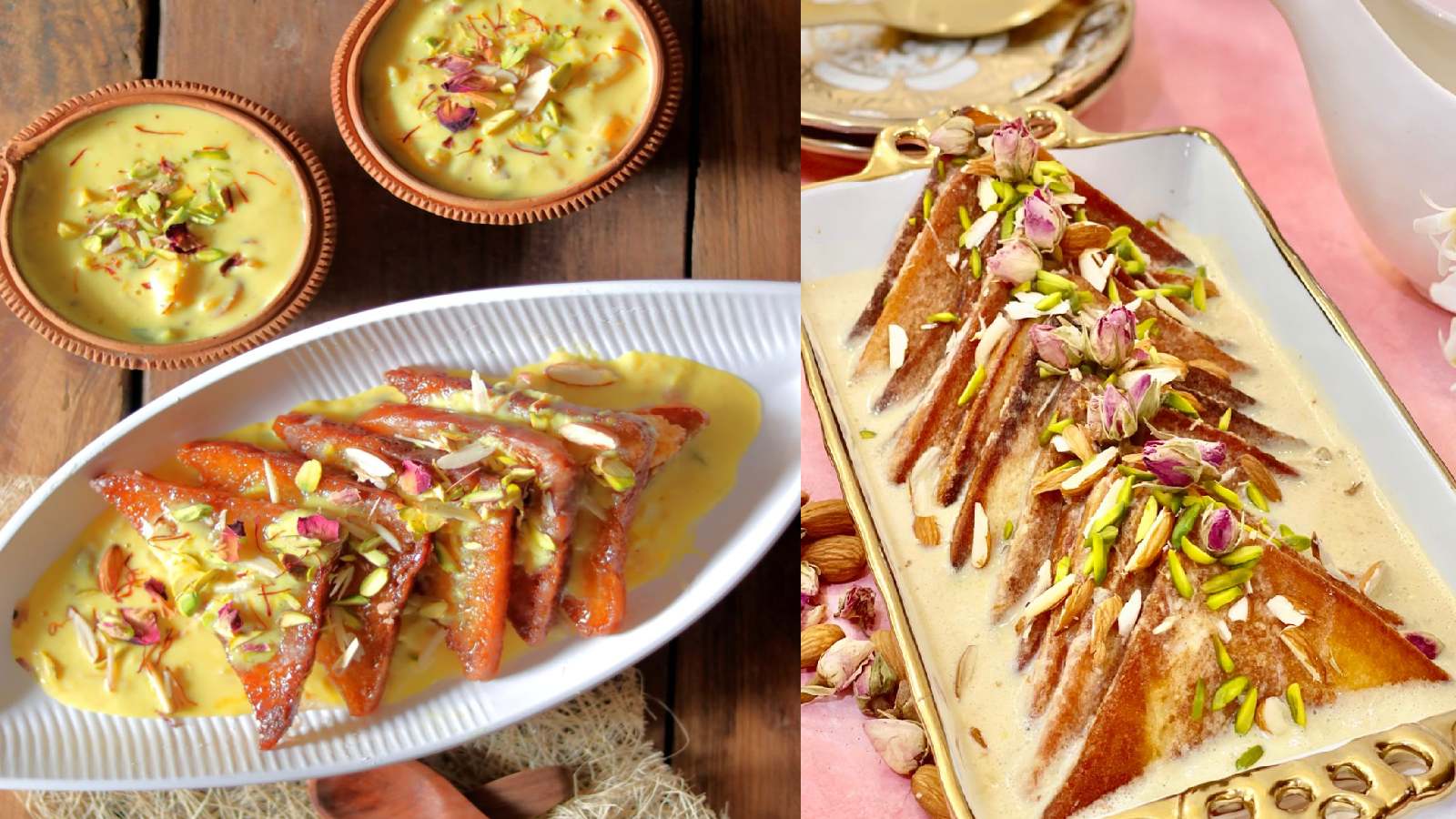 Eid Dessert Ideas: ईद का त्योहार मिठास और खुशियों से भरा होता है। जहां इस खास मौके पर सेवई (वर्मीसेली पुडिंग) बनाना एक प्यारी परंपरा है, वहीं आप अपने मेहमानों को कुछ नई और स्वादिष्ट मिठाइयों से भी सरप्राइज दे सकते हैं। इस ईद पर, अपने मेन्यू में कुछ वैरायटी लाएं और इन अलग-अलग डेजर्ट को आजमाएं, जो स्वाद और दिखने, दोनों में ही शानदार हैं।