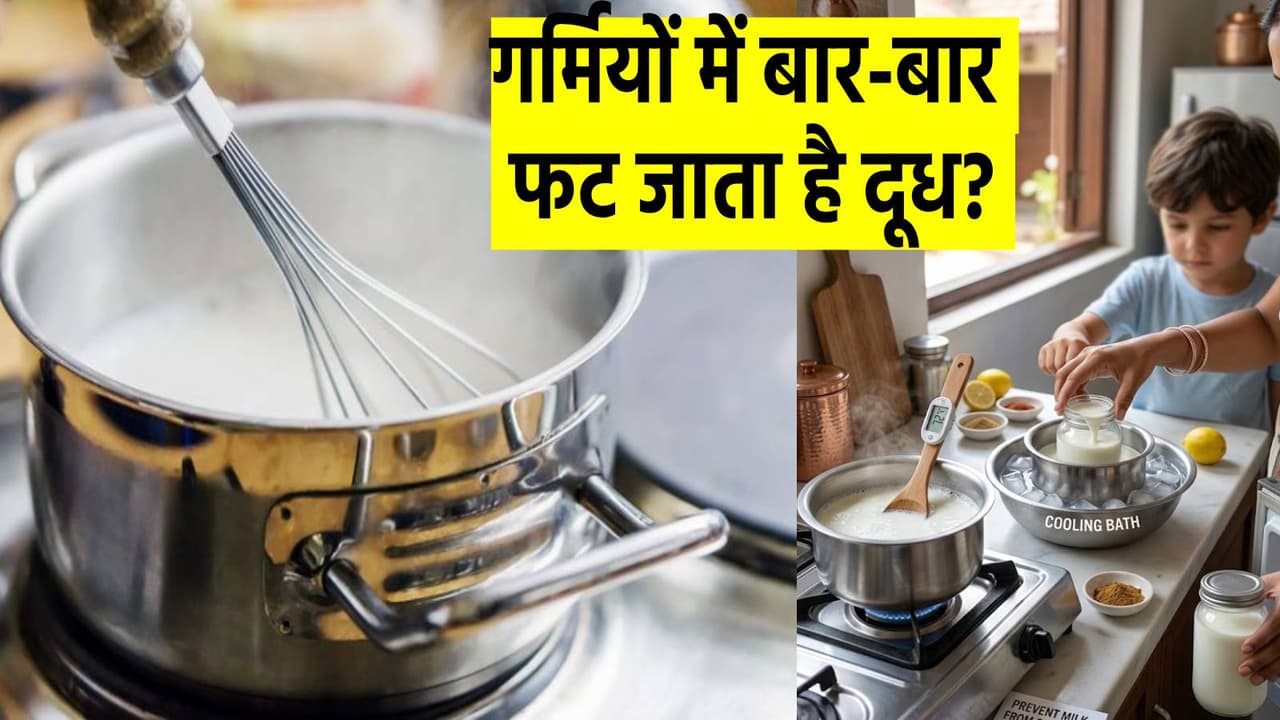 Tips to Store Milk Properly: गर्मी के मौसम में दूध का खराब होना एक आम समस्या है। दूध को ठीक से उबालने, ठंडा करने और साफ बर्तन में रखने से वह लंबे समय तक फ्रेश रह सकता है। कुछ आसान किचन टिप्स को फॉलो करके आप दूध को खराब होने से बचा सकते हैं और उसकी फ्रेशनेस बनाए रख सकते हैं।