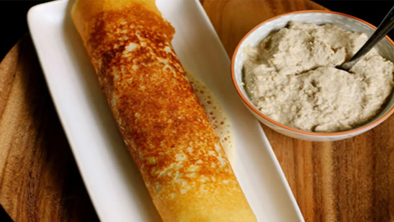 अब इसे पलटें और फिर दूसरी तरफ से भी आधा से एक मिनट तक पकाएं। (इसमें आप आलू या पनीर की स्टफिंग कर सकते हैं।) डोसे को फोल्ड करके नारियल की चटनी के साथ सर्व करें।