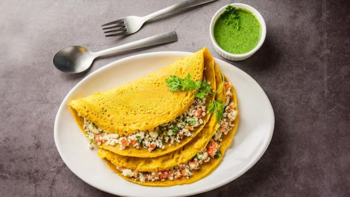 - मीडियम आंच पर चीला दोनों तरफ से गोल्डन ब्राउन होने तक पकाएं।
