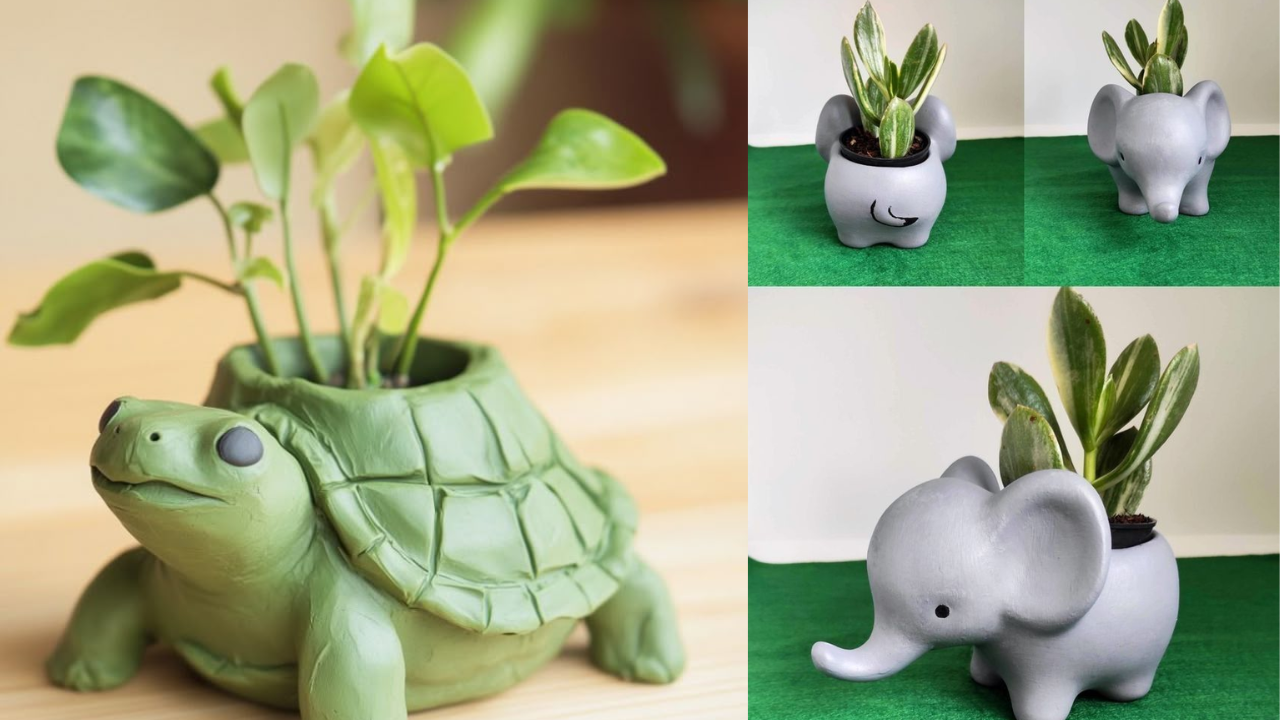 कांच के टूटे कप हर घर में होते हैं। आप इसमें थोड़ा सा स्टाइल जोड़ते हुए क्ले से एलीफेंट शेप देकर कलर कर दें। ये आर्टिफिशियल पौधों के साथ सेक्युलेंट प्लांट के लिए बेस्ट है। इसे शेल्फ, विंडो, बेडरूम, स्टडीरूम और हाल में रख सकते हैं।