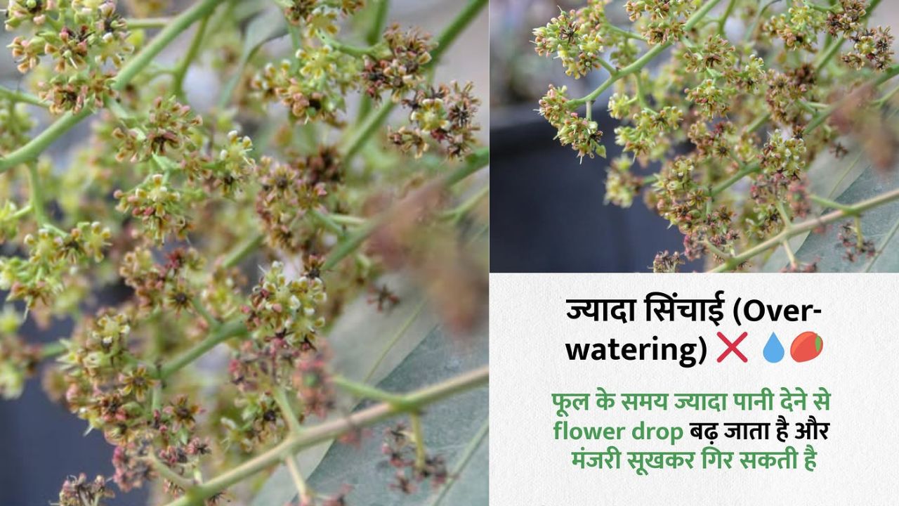 मंजरी आने के समय पेड़ को जरूरत से ज्यादा पानी देना भी एक बड़ी गलती हो सकती है। अधिक सिंचाई करने से पेड़ में नई पत्तियां और शाखाएं तेजी से बढ़ने लगती हैं। इससे पौधे की ऊर्जा फूलों की बजाय पत्तियों की वृद्धि में लग जाती है और फूल झड़ने लगते हैं।