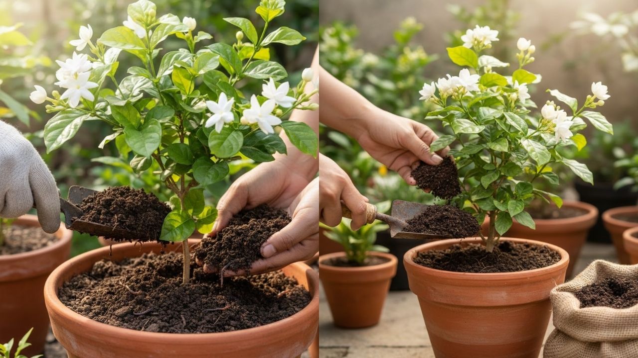 भारी और चिपचिपी मिट्टी मोगरे की सबसे बड़ी दुश्मन है। हमेशा हल्की, ड्रेनेज वाली मिट्टी इस्तेमाल करें जिसमें गार्डन सॉयल, रेत और कंपोस्ट बराबर मात्रा में हो। पानी रुकने से जड़ें खराब होती हैं और नई कली खिलना कम हो जाता है।