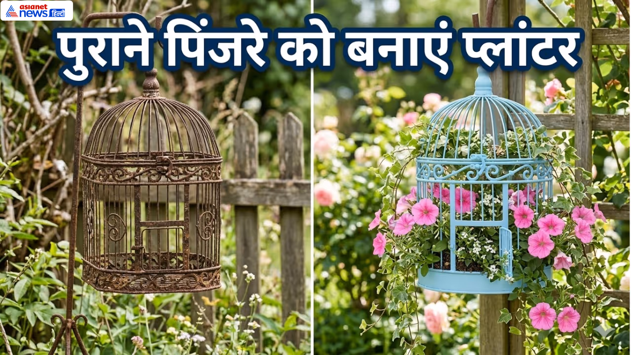 Birdcage Hanging Planter Ideas: कबाड़ में पड़े लोहे के पिंजरे से बनाएं खूबसूरत फ्लावर प्लांट, जानिए इसमें कौन से पौधे लगाएं और कैसे करें DIY गार्डन डेकोरेशन।
