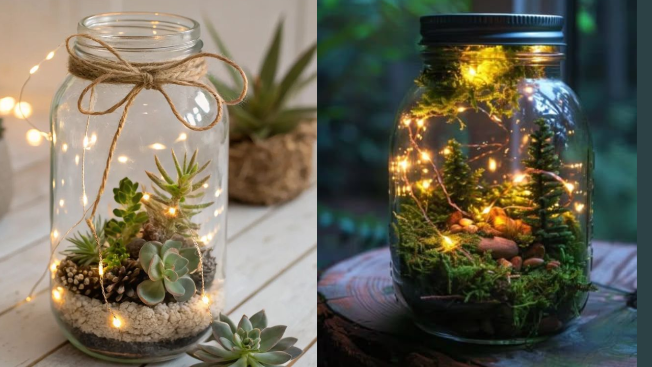 Mason jar crafts with lights: कांच का जार केवल आचार-मसाला रखने के लिए नहीं होता आप इनसे से शानदार प्लांटर और डेकोरेशन बना सकते हैं। देखिए decorating jars ideas जो आपके घर को देंगे लग्जरी लुक।