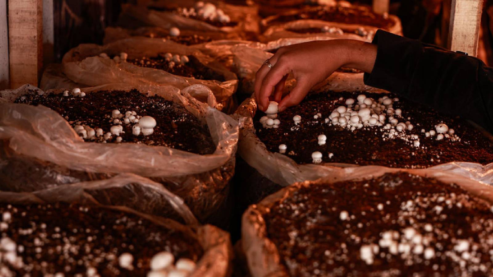 लगभग 10-12 दिनों के बाद, बैग के अंदर एक सफेद जाल (माइसेलियम) बनने लगता है। 7-10 दिनों के बाद, छोटे-छोटे मशरूम दिखने लगते हैं। जब मशरूम पूरी तरह से बड़े हो जाएं, तो उन्हें धीरे से तोड़ लें।