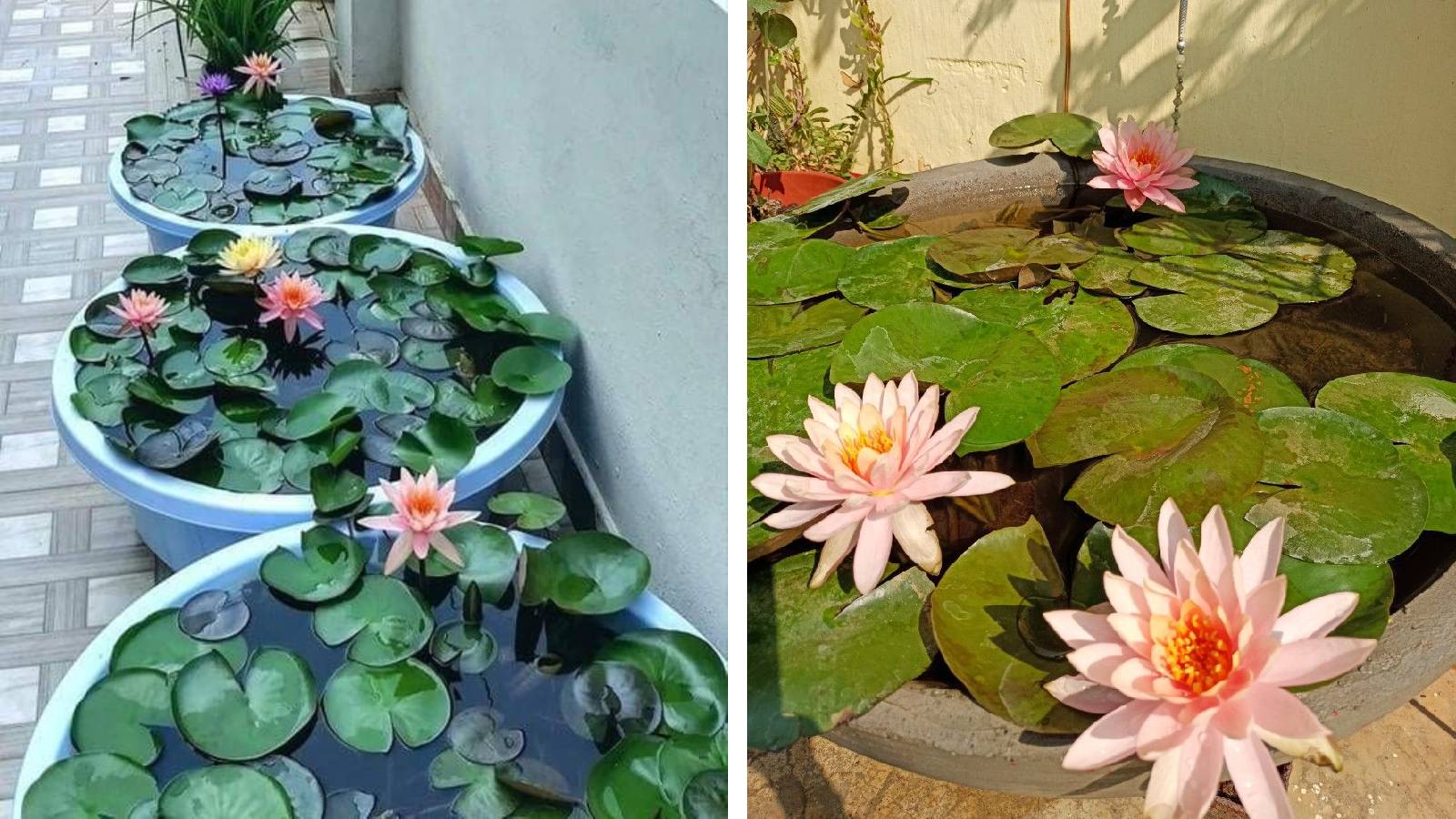 घर में अगर पुराने प्लास्टिक के टब पड़े हैं, तो आप उन्हें फेंकने के बजाय बालकनी में सुंदर मिनी पॉन्ड लुक क्रिएट कर सकती हैं। गर्मियों के मौसम में प्लास्टिक टब में पानी भरकर कमल उगाए जा सकते हैं। कुछ लोगों को लगता है कि कमल घर के अंदर उगाना पॉसिबल नहीं है, जबकि ये बात गलत है। आप बड़े प्लास्टिक टब में आसानी से कमल ग्रो कर सकते हैं। मिनी पॉन्ड लुक के लिए टब के किनारे पेबल्स या रंगीन पत्थर रखें और कम स्पेस को सजा लें। जानिए किन स्टेप्स की मदद से प्लास्टिक टब में कमल ग्रो कर सकते हैं।