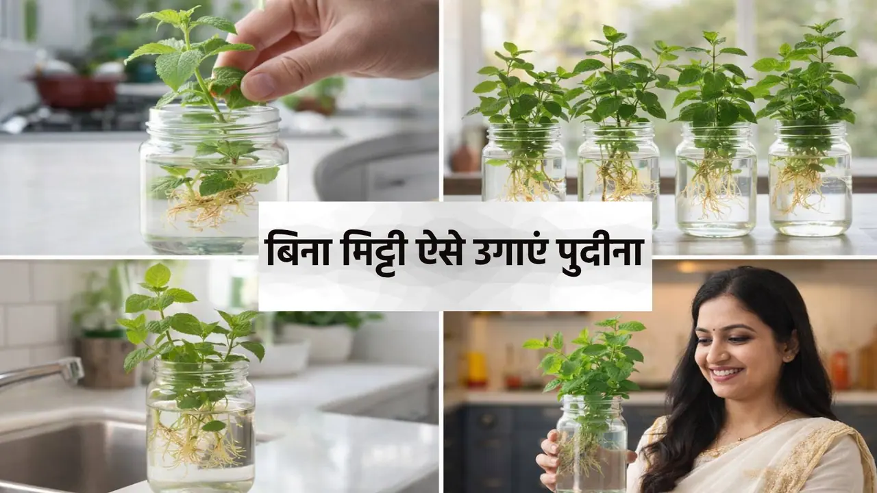 Water Grown Mint Plant: अगर आपके पास मिट्टी या गमलों के लिए जगह नहीं है, तो भी आप आसानी से पुदीना उगा सकते हैं। सिर्फ पानी और एक ताजी कटिंग से, अब पूरे साल अपने किचन गार्डन में ताजा पुदीना उगाना बहुत आसान हो गया है।