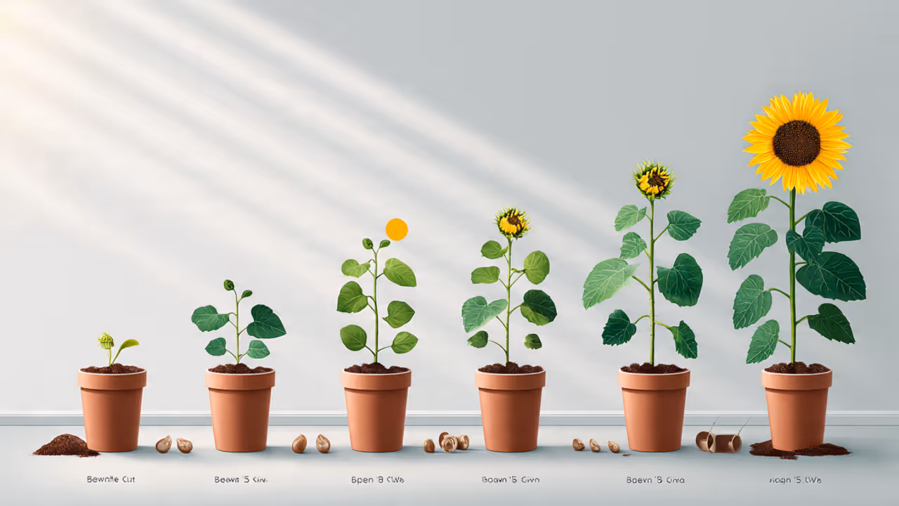 बीज को बहुत गहराई में बोना या एक ही गमले में कई बीज डाल देना आम गलती है। सूरजमुखी का बीज 1–1.5 इंच गहराई में एक ही लगाएं। हल्का पानी दें और मिट्टी को नम रखें। आमतौर पर 5 से 8 दिनों में अंकुरण दिखने लगता है।