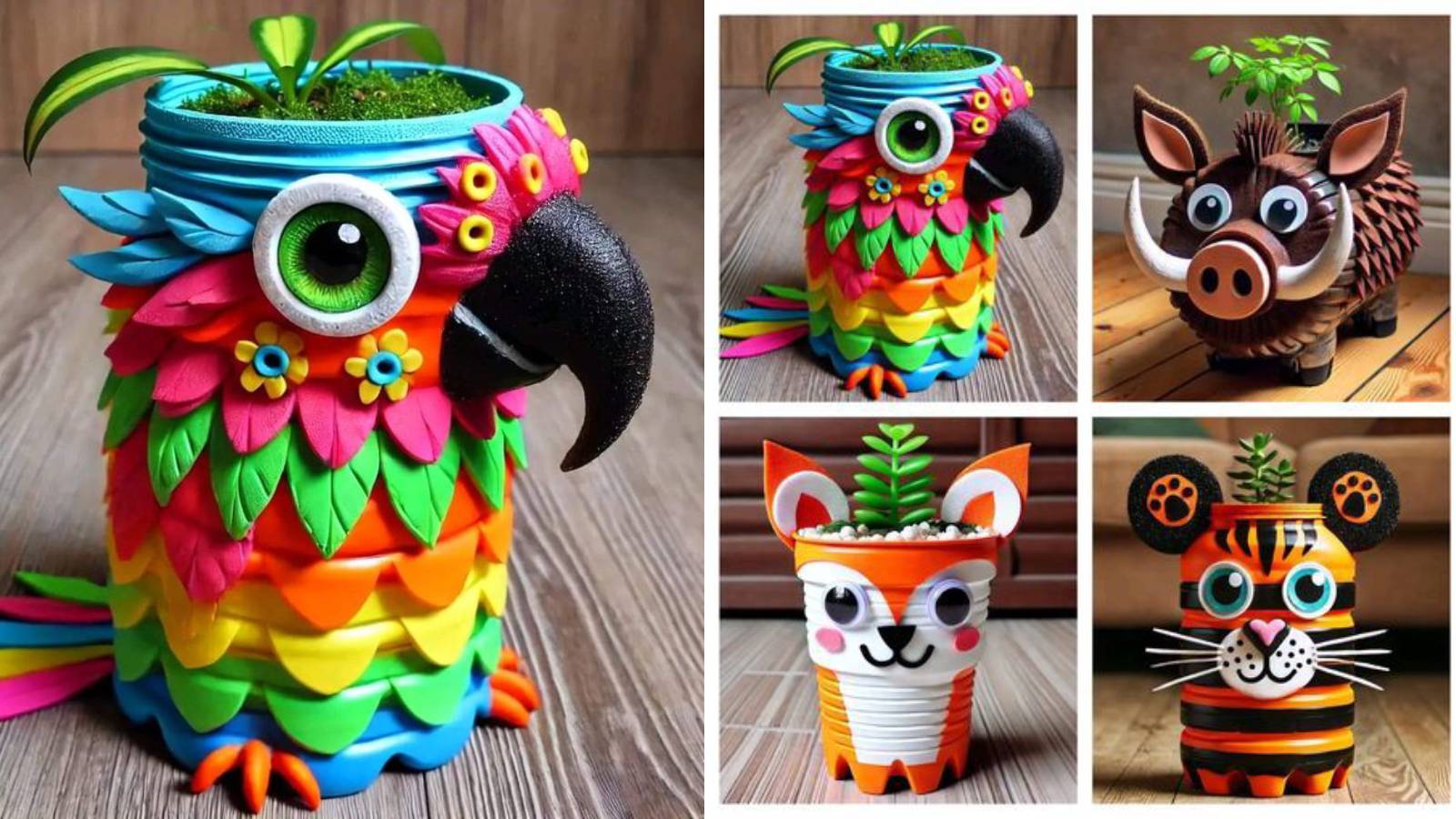 आप प्लास्टिक मसाले के पुराने डिब्बों को आसानी से एनिमल प्लांटर के रूप में बदल सकते हैं। Pinterest में पैरेट प्लांटर खूब पसंद किए जा रहा हैं। इसे बनाने के लिए आपको पिंक, ग्रीन, ऑरेंज क्ले की जरूरत पड़ेगी। आपको क्ले को लीव डिजाइन में कट कर लेना है और उसके बाद प्लास्टिक के डिब्बे में राउंड आकार में लगाना है। इसके बाद आप क्ले की मदद से ही पैरेट की नोज बना सकते हैं। यह प्लांटर दिखने में काफी खूबसूरत लगता है। वहीं टाइगर, पिग और कैट प्लांटर भी आसानी से बन जाते हैं।