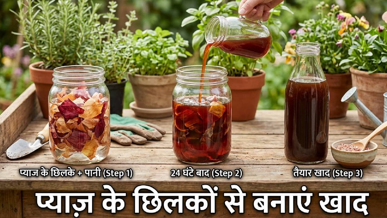 प्याज के छिलकों में पोटेशियम, कैल्शियम, आयरन के साथ ही एंटीऑक्सीडेंट पाए जाते हैं, जो कि पौधों की ग्रोथ में मदद करते हैं। यह न सिर्फ मिट्टी की उर्वरता को बढ़ाता है बल्कि पौधों को भी मजबूती देता है। आइए जानते हैं घर में कैसे प्याज के छिलकों से लिक्विड खाद बनाई जा सकती है।