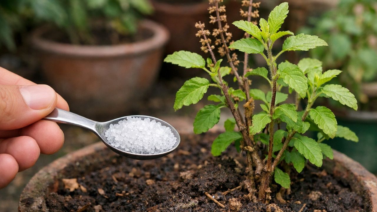 Tulsi Plant Regrowth Tips: सूख रही तुलसी को हरा-भरा बनाना चाहते हैं? जानें कौन-सा नमक सुरक्षित है। एप्सम सॉल्ट सही मात्रा में डालने से पत्तियां गहरी हरी और पौधा मजबूत बनता है। टेबल सॉल्ट से बचें और धूप-पानी का सही संतुलन रखें।
