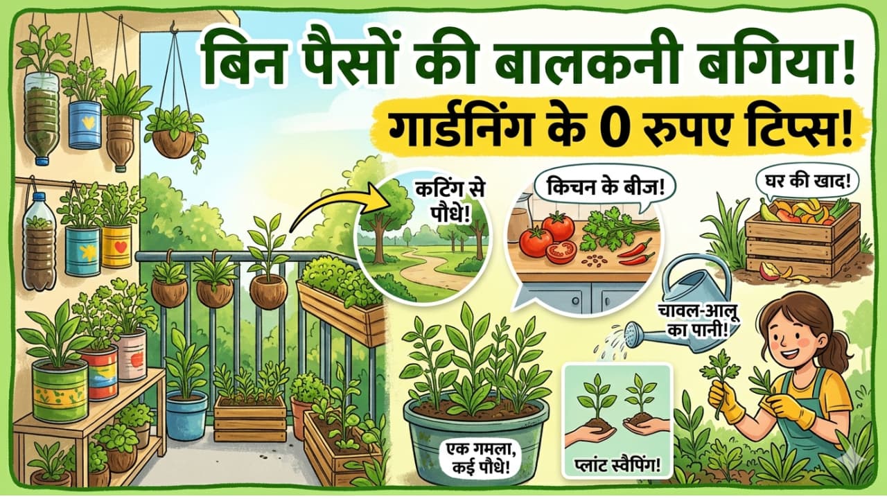 Zero Cost Gardening Ideas: गार्डनिंग करना महंगा लगता है, तो जानिए कैसे बिना पैसों को किचन के बीज, घरेलू उत्पाद से छोटी बालकनी को हरा-भरा बनाया जा सकता है। आसान सस्ते और असरदार टिप्स।
