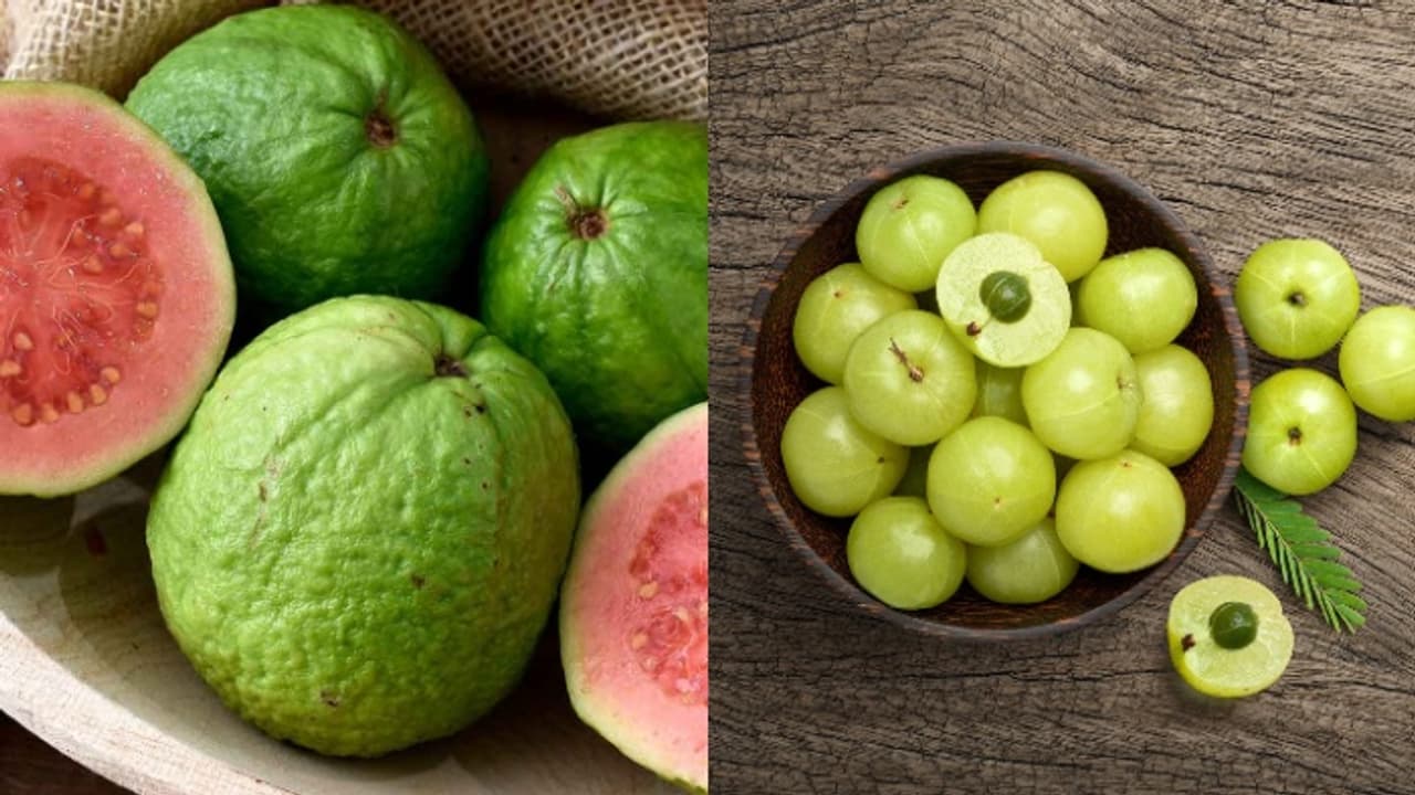 आंवला विटामिन सी का एक और अच्छा स्रोत है। 100 ग्राम आंवले में 600-700 मिलीग्राम विटामिन सी होता है। आंवले में आयरन, कैल्शियम, टैनिन, फ्लेवोनोइड्स जैसे एंटीऑक्सीडेंट भी होते हैं। इन पोषक तत्वों के कारण, यह संपूर्ण स्वास्थ्य के लिए अच्छा होता है।अमरूद और आंवला दोनों ही रोग प्रतिरोधक क्षमता को बेहतर बनाने में मदद करते हैं। अमरूद में मौजूद उच्च विटामिन सी प्रतिरक्षा को बढ़ाता है, कोशिकाओं को नुकसान से बचाता है और स्वस्थ त्वचा के लिए कोलेजन उत्पादन में मदद करता है।