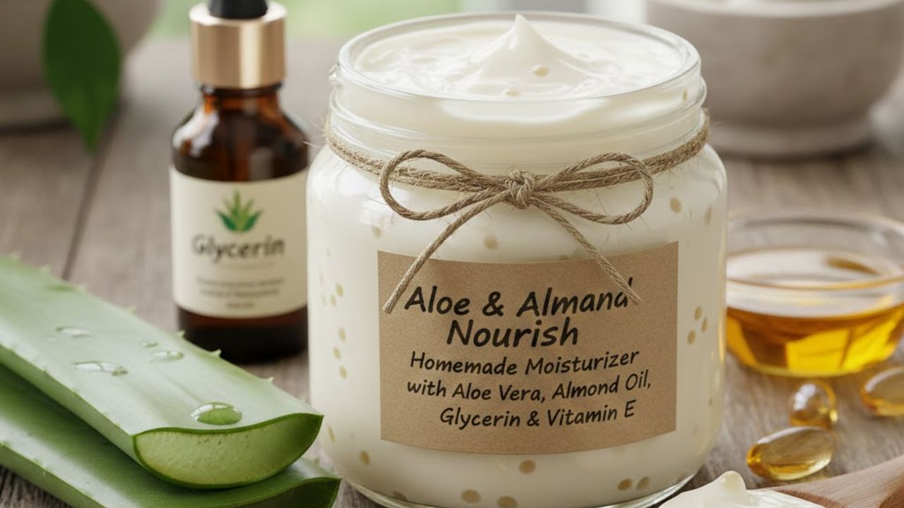 Homemade Aloe Vera Moisturizer: एलोवेरा, बादाम तेल, ग्लिसरीन और विटामिन E से 5 मिनट में बनाएं 100% नेचुरल मॉइस्चराइजर। सर्दियों में स्किन को देगा डीप हाइड्रेशन, सॉफ्टनेस और ग्लो। केमिकल-फ्री, बजट-फ्रेंडली और हर स्किन टाइप के लिए परफेक्ट होममेड क्रीम।