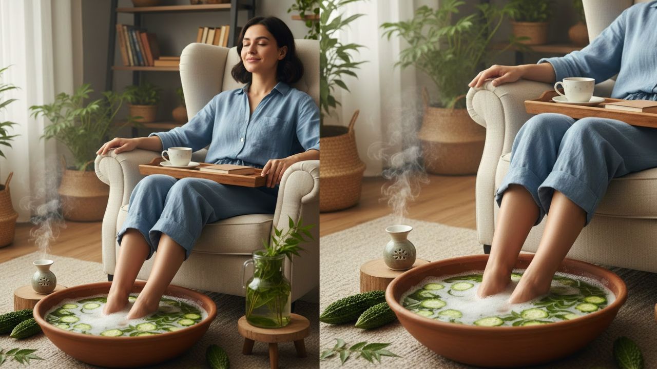 Karela Neem Foot Soak: करेला-नीम फूट थेरेपी शरीर को पैरों के जरिए डिटॉक्स करती है, स्किन को ग्लो देती है और डाइजेशन सुधारती है। करेले व नीम को पानी में मसलकर 20 मिनट पैरों को डुबोकर रखने से टॉक्सिन्स बाहर निकलते हैं और बॉडी को नैचुरल हीलिंग मिलती है।