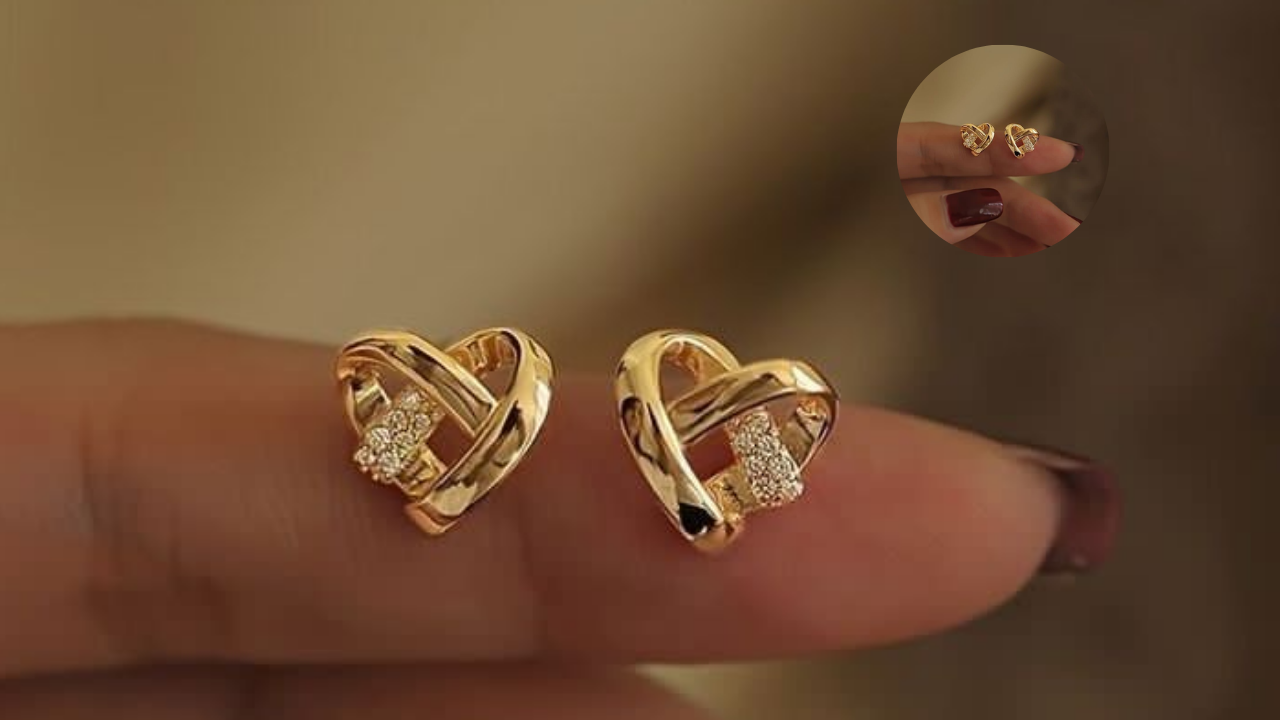 1 ग्राम गोल्ड में छोटा से हार्ट शेप के इयररिंग्स बन जाएंगा। इसे इंटरलॉकिंग किसक्रॉस डिजाइन पर नॉक जैसा लुक दिया गया है। इसे प्योर सोने की बजाय कॉपर और अलॉय मटेरियल से बनाया गया है। साथ में Cubic Zirconia और American Diamond वाले नग चमक बढ़ा रहे हैं। आप इसे मिनिमलिस्ट स्टाइल के लिए चुनें। इसे डेली वियर, ऑफिस और कॉलेज के लिए चुना जा सकता है।