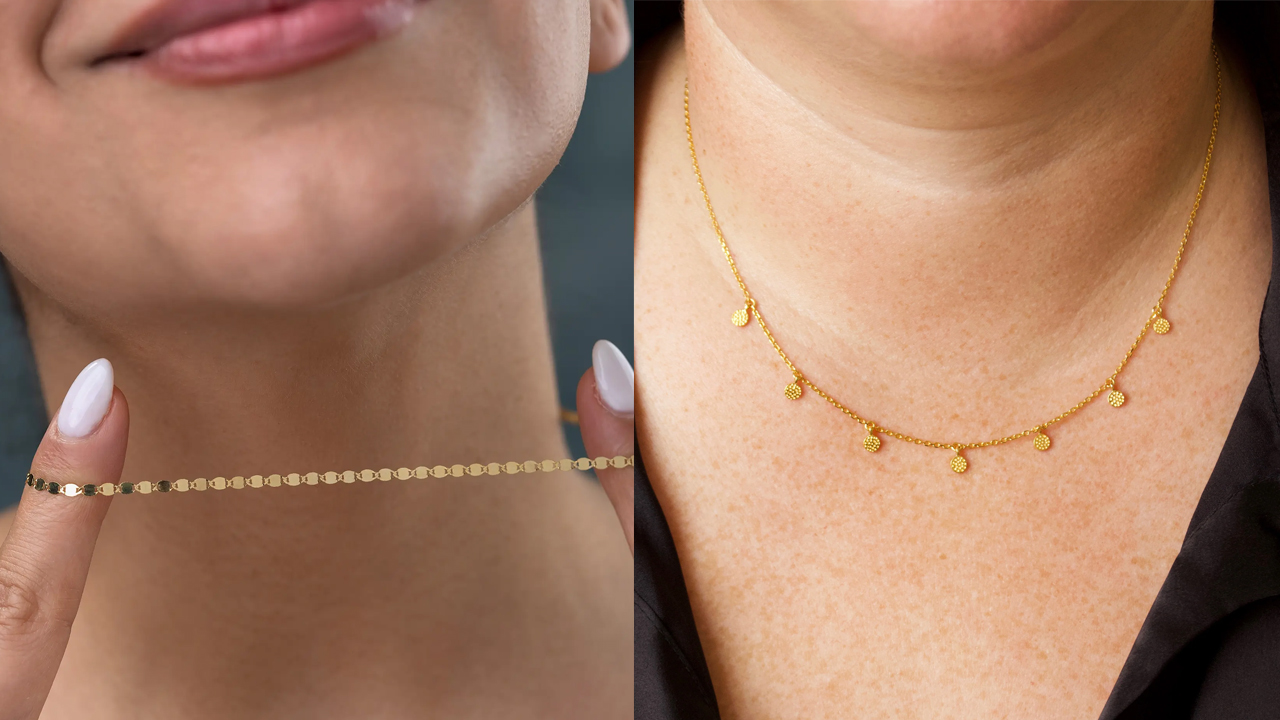 स्नेक चेन की खासियत है उसका फ्लैट और स्मूथ लुक। गोल्ड प्लेटेड स्नेक चेन बिल्कुल असली गोल्ड स्नेक चेन जैसी लगती है। पार्टी, पूजा या किसी भी फंक्शन में बीवी इसे पहनेंगी तो उनकी तारीफ जरूर होगी। ये चेन दिखने में महंगी लगती है, लेकिन 1 ग्राम प्लेटेड वर्जन बजट में आ जाता है।