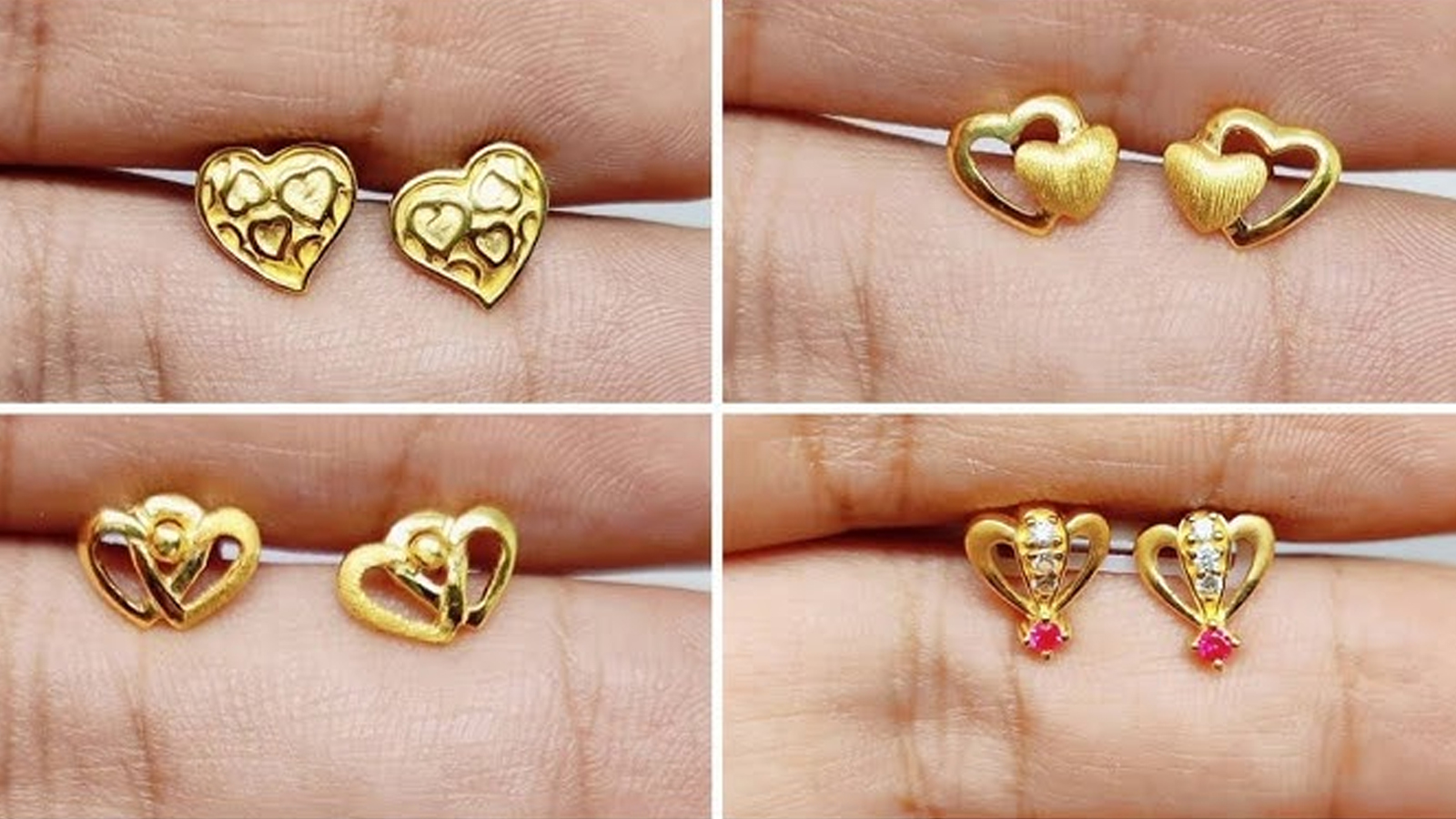यह स्टड डिजाइन ट्विस्टेड गोल्ड वायर से हार्ट शेप में बनता है। इससे मिनिमलिस्ट और क्लासी लुक मिलता है। जिन्हें रोज पहनने के लिए कुछ cute और trendy चाहिए तो छोटे साइज में होने के बावजूद ये eye-catching लगते हैं। 1-1.5 ग्राम वजन में यंग गर्ल्स के लिए ये परफेक्ट हैं।