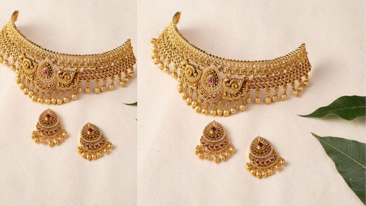 नोट- चोकर की ये डिजाइन 1.5 तोले में बन जाएगी, लेकिन इसके साथ इयररिंग के लिए आपको अलग से कॉस्ट लगेगा। इसके अलावा डेढ़ तोले में बनी ये चोकर हार बहुत हल्की और कम मजबूत होगी, क्योंकि इसका वजन बहुत कम है।