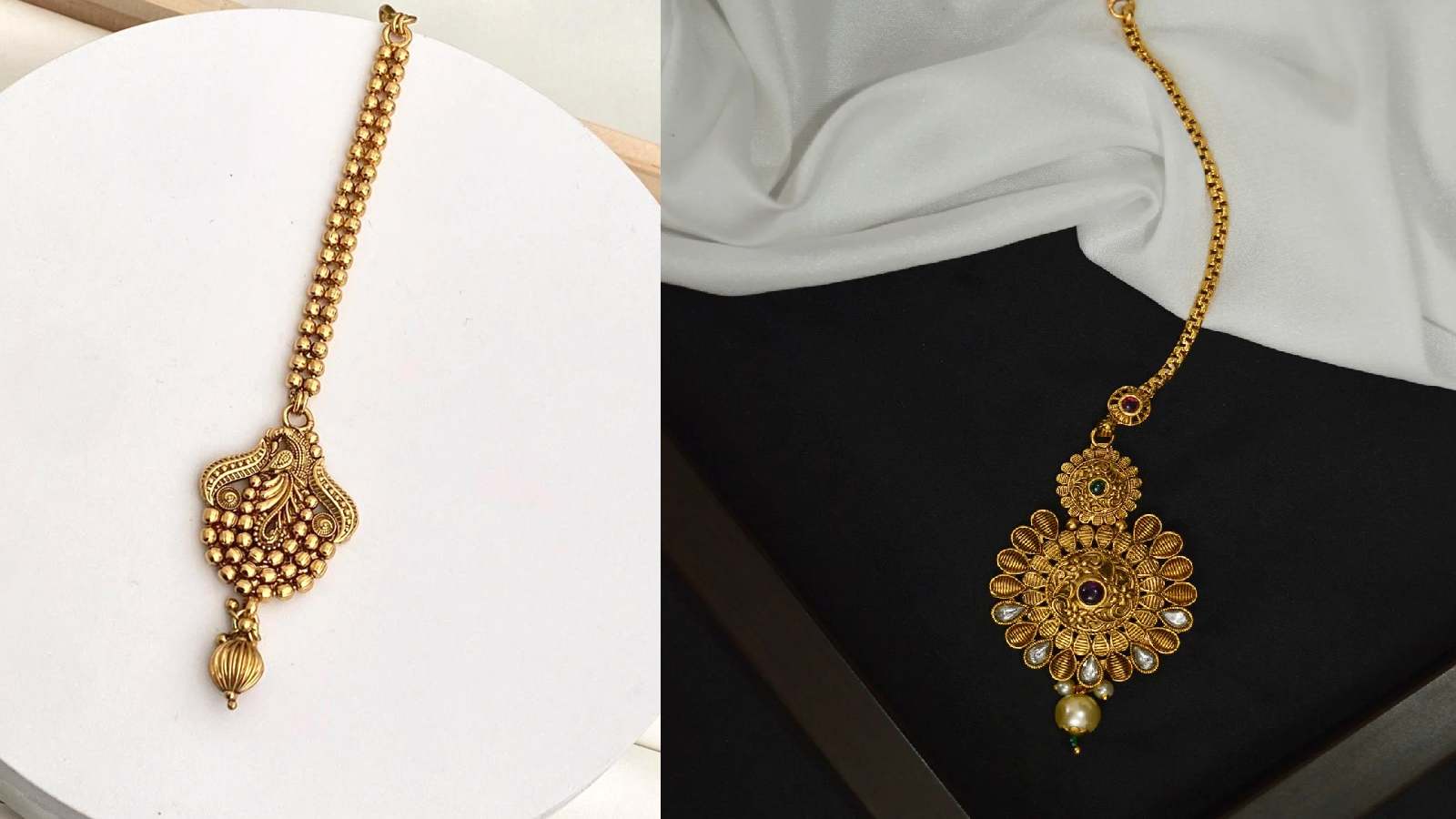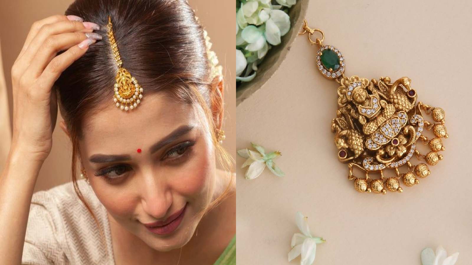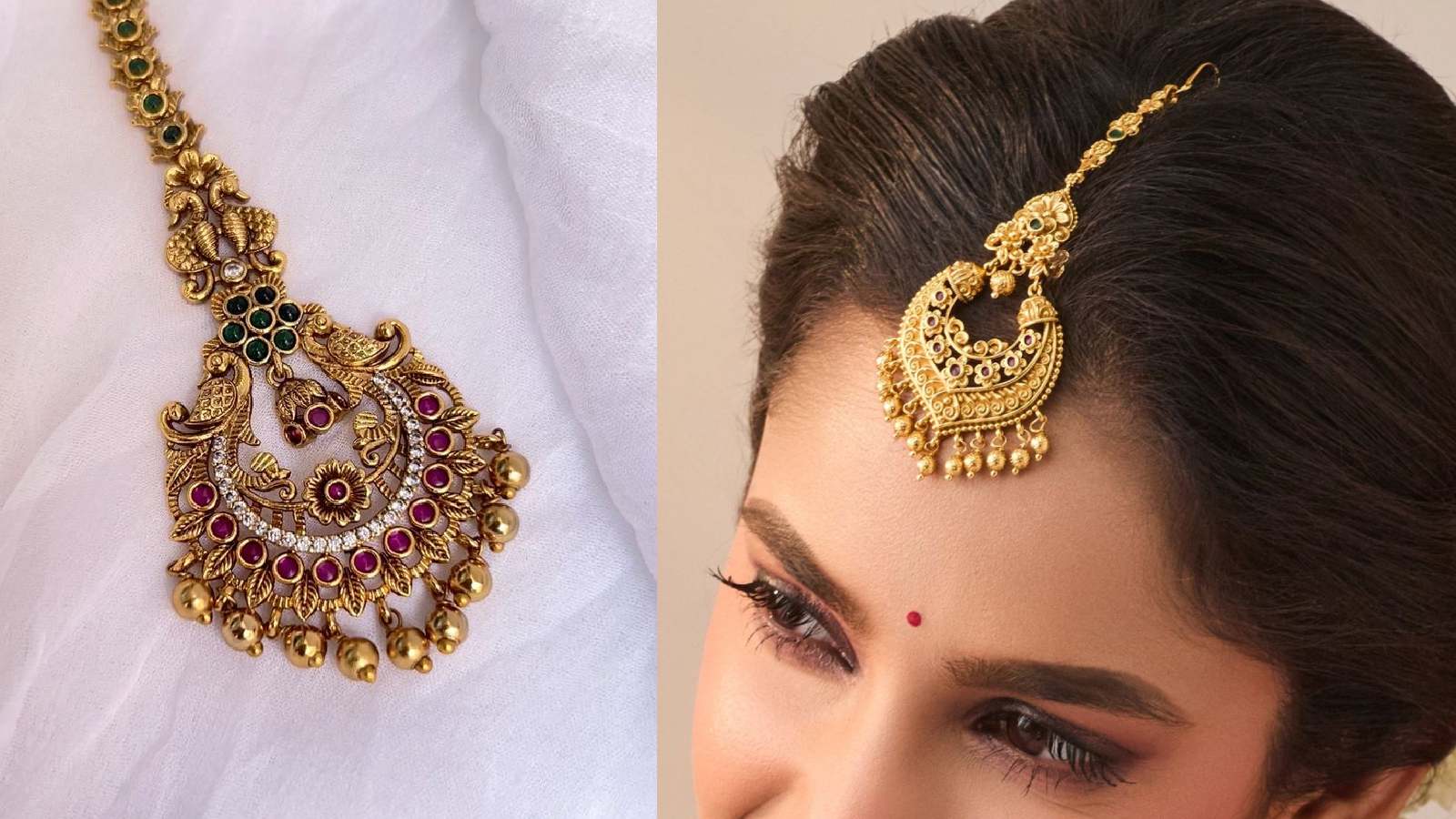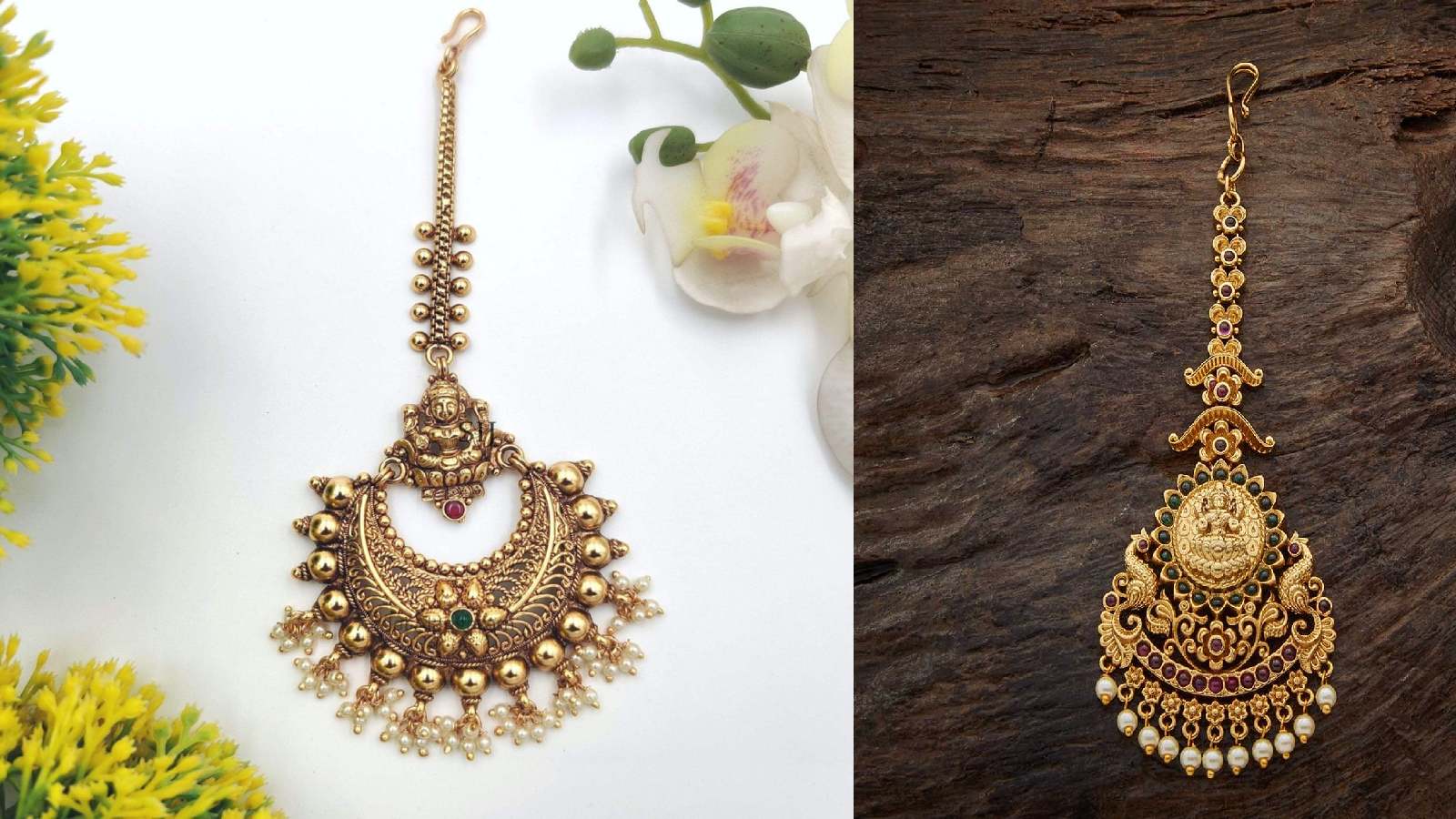 Temple Jewellery Maangtika: 22 कैरेट गोल्ड के साउथ इंडियन मांगटिका डिजाइन अपनी बारीक कारीगरी और रॉयल लुक के लिए जाने जाते हैं। इस आर्टिकल में 6 खूबसूरत डिजाइन जैसे टेम्पल, कुंदन, फ्लोरल, चेन, हेवी ब्राइडल और पर्ल डिटेलिंग वाले मांगटिका बताए गए हैं, जो हर ब्राइड और फेस्टिव लुक को खास बना देते हैं।