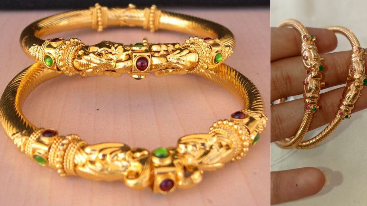 कड़ा स्टाइल बेंटक्स बैंगल की डिमांड हमेशा से रही है। ये गोल्ड और बेंटेक्स दोनों ही मेटल में आती है। हाथी मुंह से लेकर फूल और कई दूसरे पैटर्न में ये डिजाइन आपको मिल जाएगी और पहनने के बाद हाथों में क्लासी लगेगी।