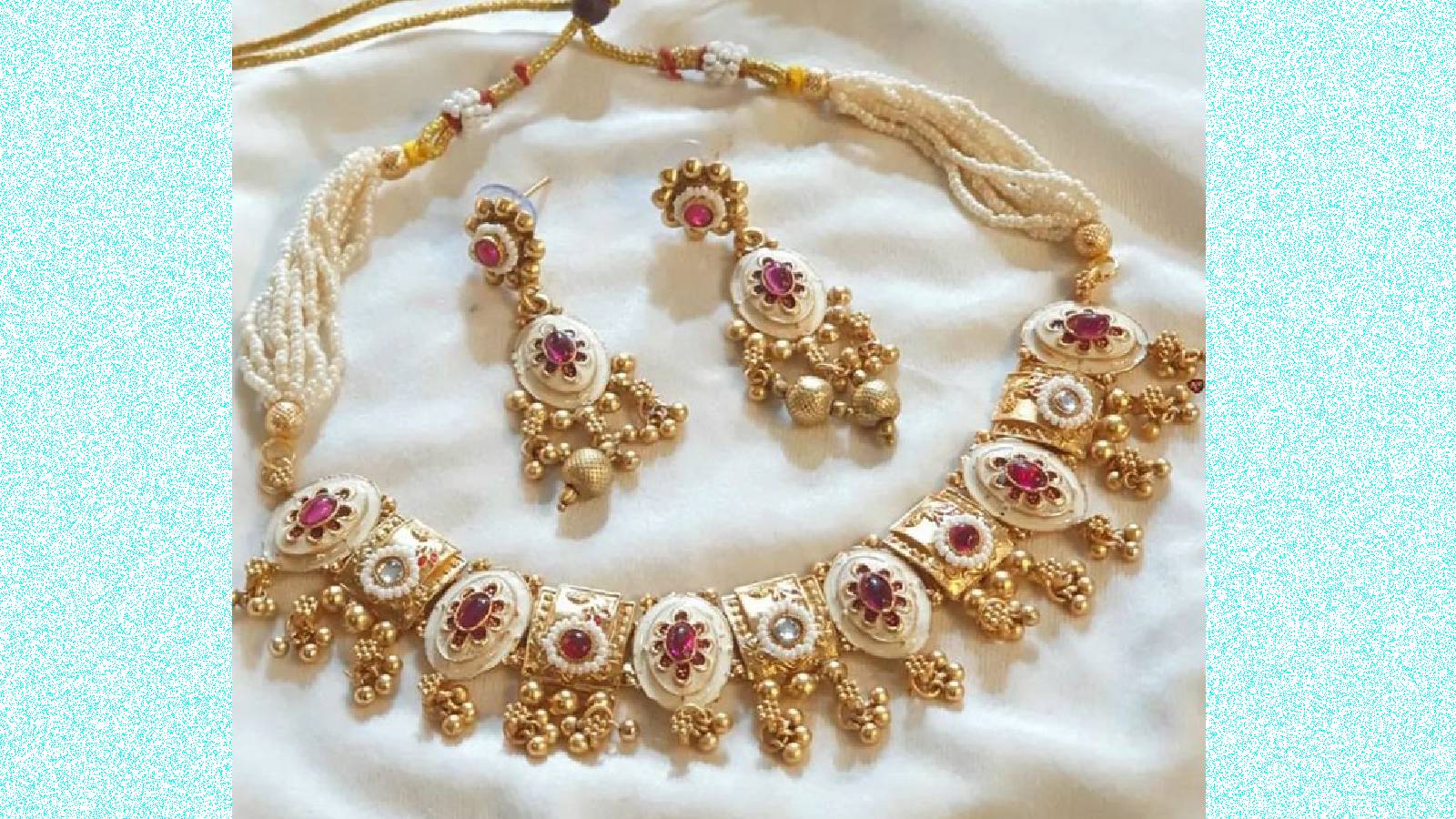 अगर हल्के मीनाकारी वर्क के साथ आप मोतियों का हार पहनना चाहती हैं तो उसमें भी आपको लेटेस्ट डिजाइन मिल जाएंगे। मीनाकारी किस रंग की चुनें? यह आप खुद तय करें। आपको लाल, हरे, नीले से लगाकर पीले रंग की मीनाकारी में सुंदर नेकलेस मिल जाएंगे। नेकलेस की कीमत 1000 से ₹3000 के अंदर होंगी। आप चाहे तो मोतियों वाली साड़ी के साथ भी ऐसा नेकलेस पेयर कर सकती हैं।