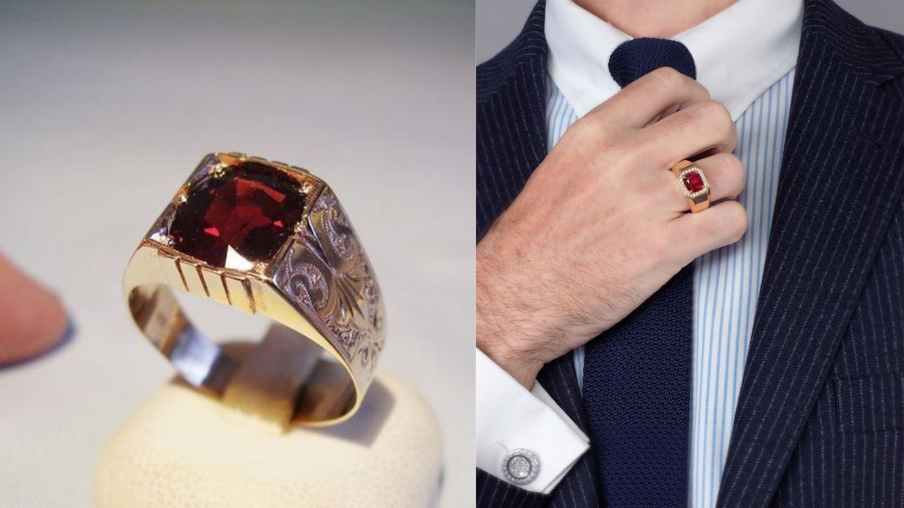 विंटेज स्टोन वाली रिंग की ये डिजाइन भी इन दिनों पॉपुलर हो रही है। लड़कों के लिए इस तरह की डिजाइन आजकल ग्रीन, व्हाइट, पिंक स्टोन में मिल रहे हैं। गोल्ड के साथ स्टोन वाली रिंग की ये पैटर्न आपको 5 ग्राम के वजन में बन जाएगी, जो कि पहनने के बाद हाथों पर भी क्लासी लगेगी।