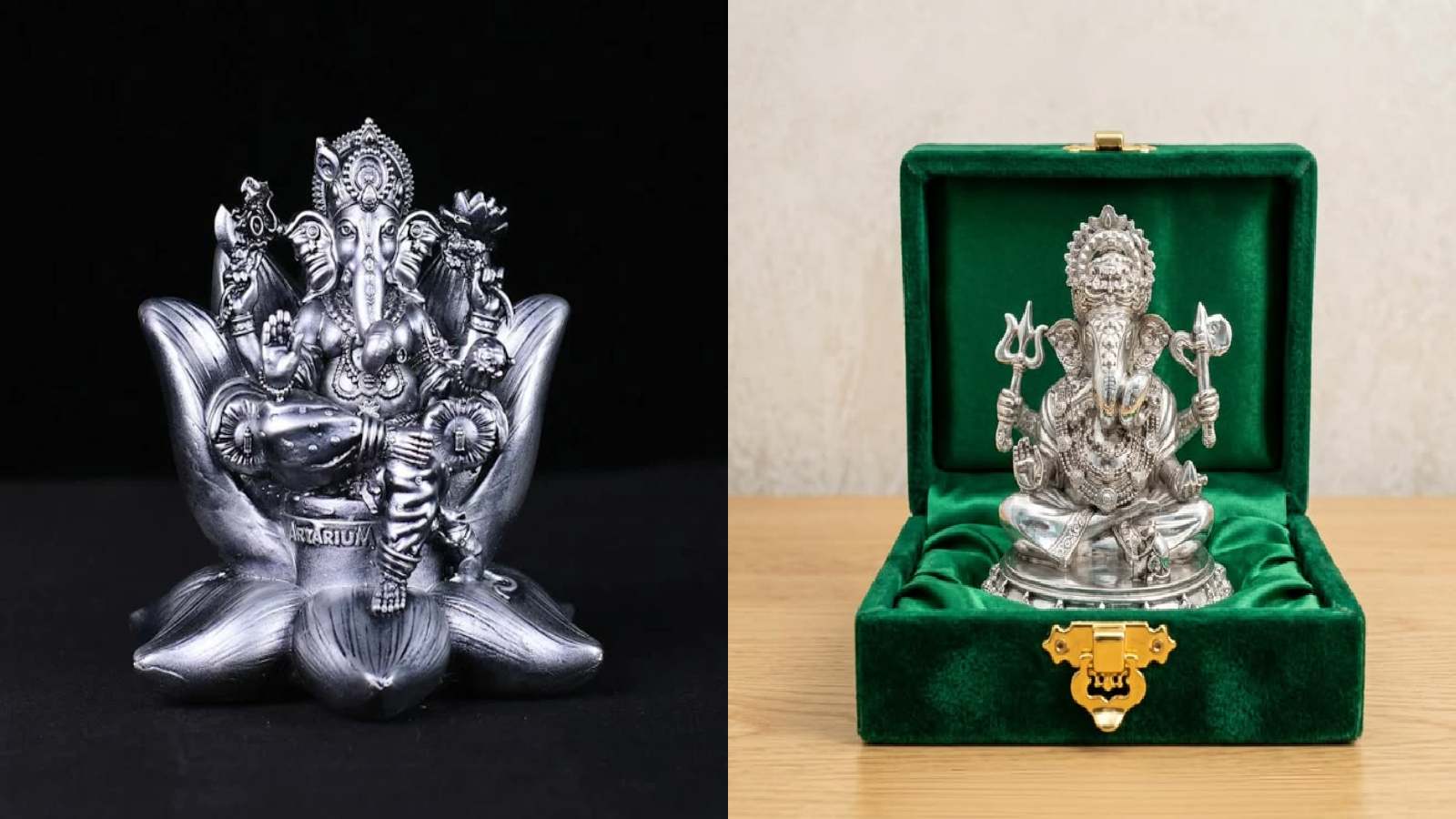 भगवान गणेश की सिल्वर मूर्ति गिफ्ट करने के लिए सबसे लोकप्रिय विकल्प है, क्योंकि इन्हें विघ्नहर्ता और शुभ शुरुआत का प्रतीक माना जाता है। छोटे साइज की गणेश मूर्तियां 1–2 इंच तक होती हैं और पूजा या डेकोर दोनों के लिए परफेक्ट रहती हैं। ऐसी मूर्तियां घर में पॉजिटिव एनर्जी लाने के साथ-साथ रिश्तों में भी शुभता का संदेश देती हैं।