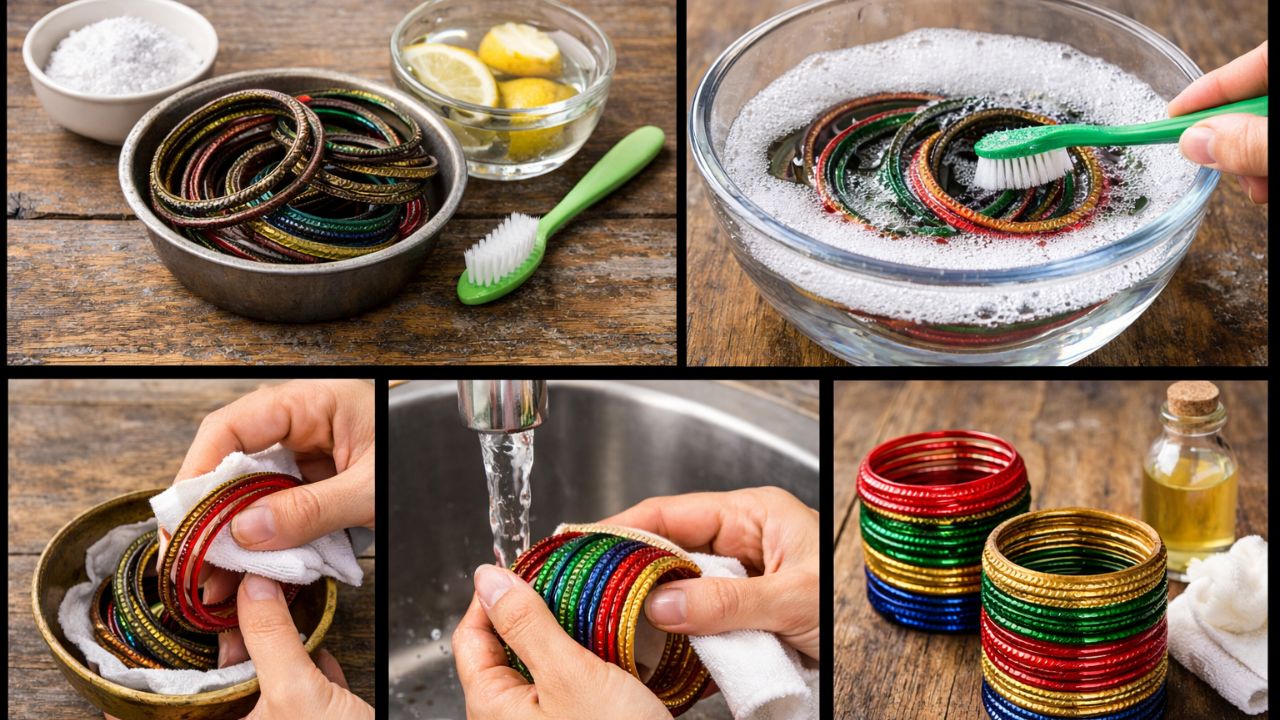 सबसे आसान तरीका है गुनगुने पानी में हल्का लिक्विड साबुन मिलाकर चूड़ियों को 10-15 मिनट के लिए भिगोना। इसके बाद नरम ब्रश से हल्के हाथों से साफ करें। इससे जमी हुई गंदगी आसानी से निकल जाती है और चूड़ियां फिर से चमकने लगती हैं।