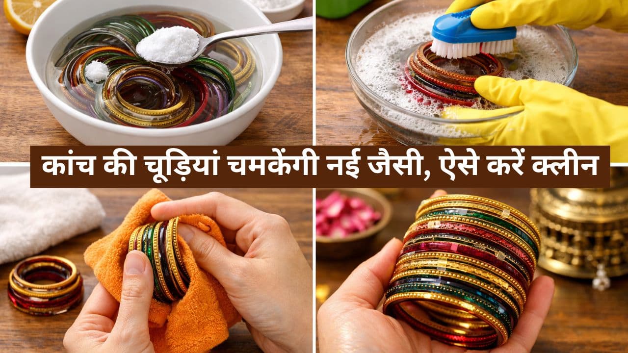 How to Clean Glass Bangles: सालों पुरानी कांच की चूड़ियों को घर पर ही आसान तरीकों से चमकाएं। जानें साबुन, बेकिंग सोडा, नींबू, सिरका और टूथपेस्ट से बैंगल क्लीनिंग के 5 असरदार टिप्स, जो आपकी चूड़ियों को नई जैसी चमक देंगे।