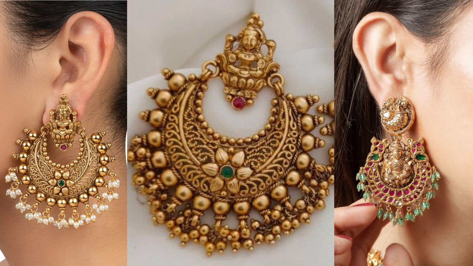 साउथ इंडियन चांदबाली की ये डिजाइन काफी पसंद की जाती है, कम वेट में हैवी लुक के लिए आप इस तरह के डिजाइन को ले सकती हैं। चांदबाली में टेंपल पैटर्न, कुंदन और एंटीक पॉलिश का काम मिल जाएगा।